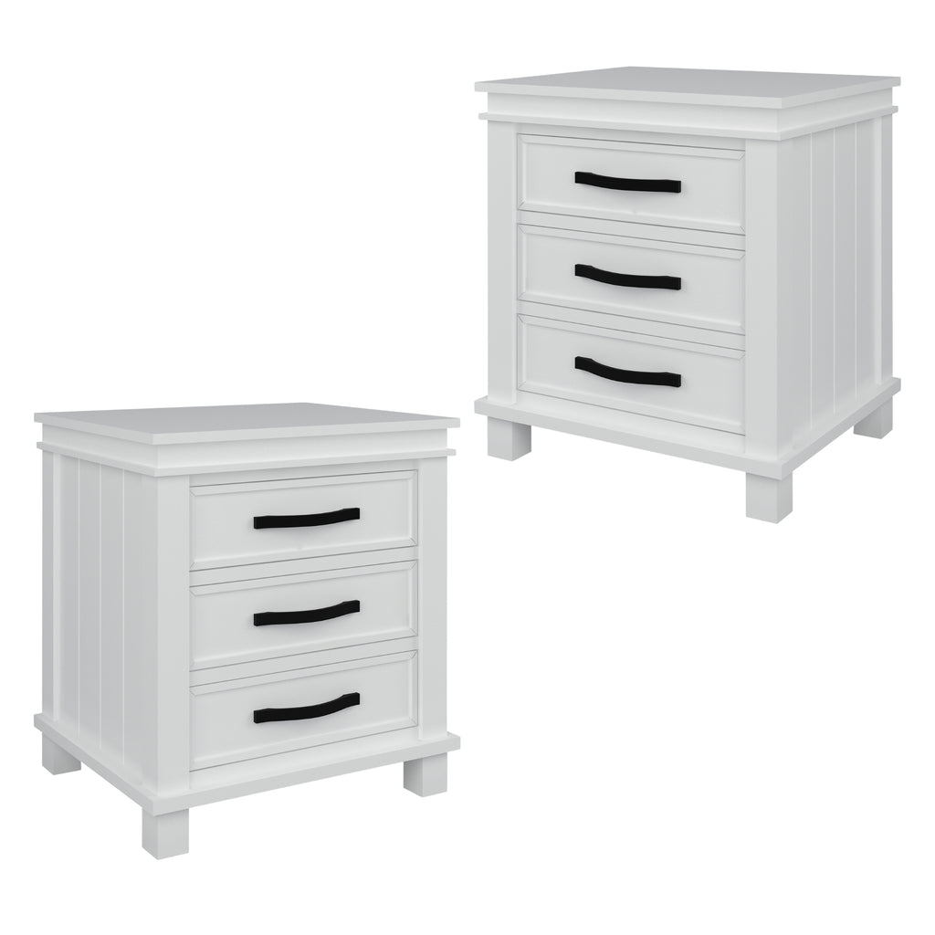 A bedside table makes your life easier by solving the issue of storage in the bedroom. This beautiful 2-piece set of slim-design bedside tables, designed in the traditional style, with 3 sizable drawers in each bedside does exactly the same and also adds sparkle to your bedroom. Adorable in their appearance, the bedsides feature a strong structure of solid acacia wood and MDF, obtained in a sustainable manner. The wood is known for its amazing strength, great durability, shock-resistance, and ease of maintenance. The sizable drawers have full-extension metal runners and metal handles in a matt black finish. The bedside tables look pretty amid a range of decor themes because they are in a white painted finish. The fully assembled bedsides come with a one-year warranty.