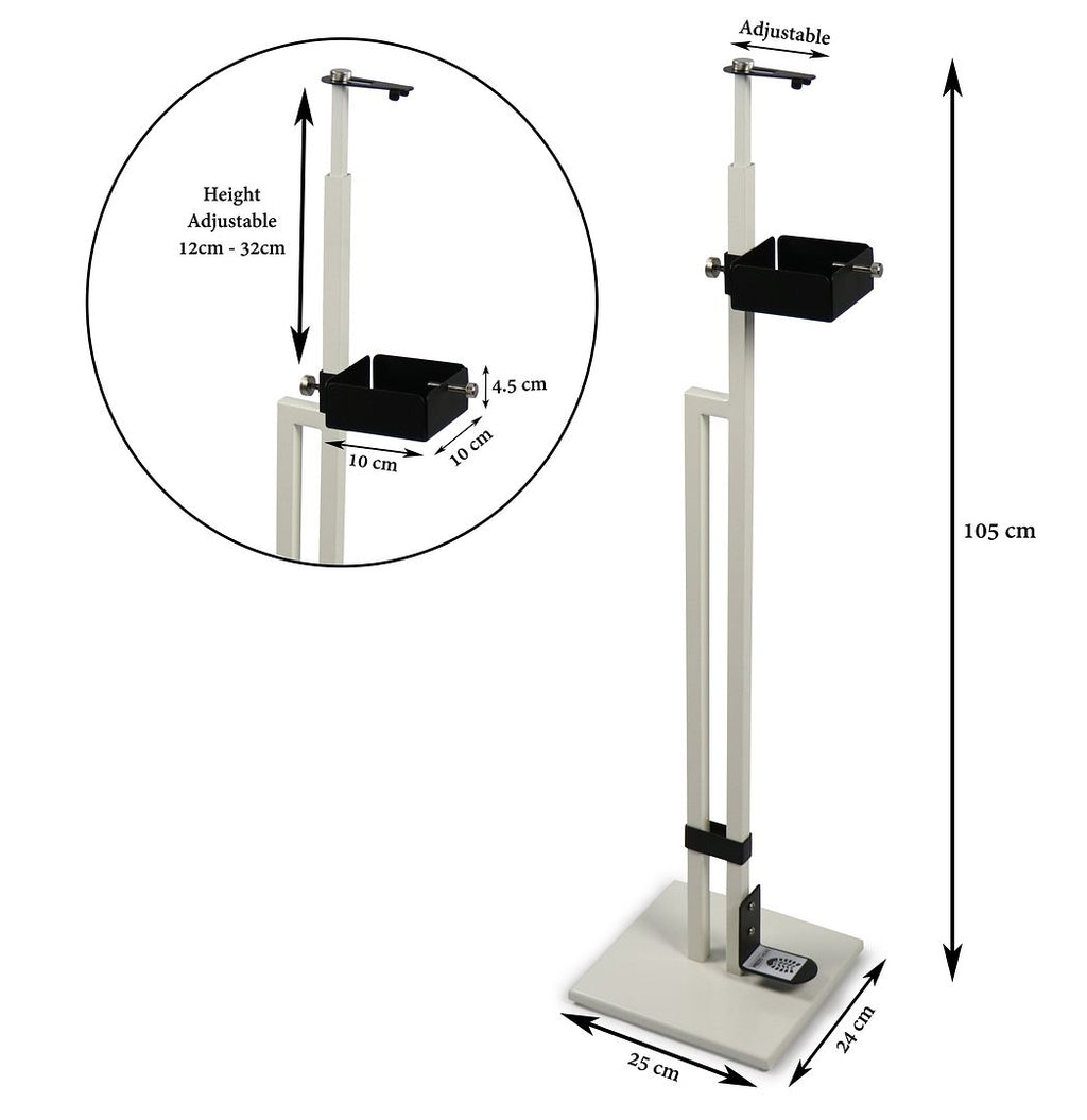 The Lirash Touch Free Hand Sanitiser Dispenser Station Floor Stand Foot Operated - White Black makes hand hygiene convenient and extremely easy to implement in both commercial and residential settings. With the flexibility of placing any sanitiser bottle you like, this stand is ideal to make sanitisation accessible within retail shops, workplaces, cafés, restaurants, libraries, medical centres, schools and more.