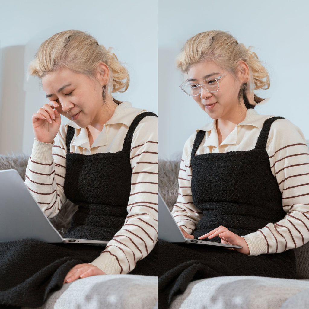 Combat eye discomfort and headache from harmful HEV light on digital screens with our stylish non-prescription glasses.