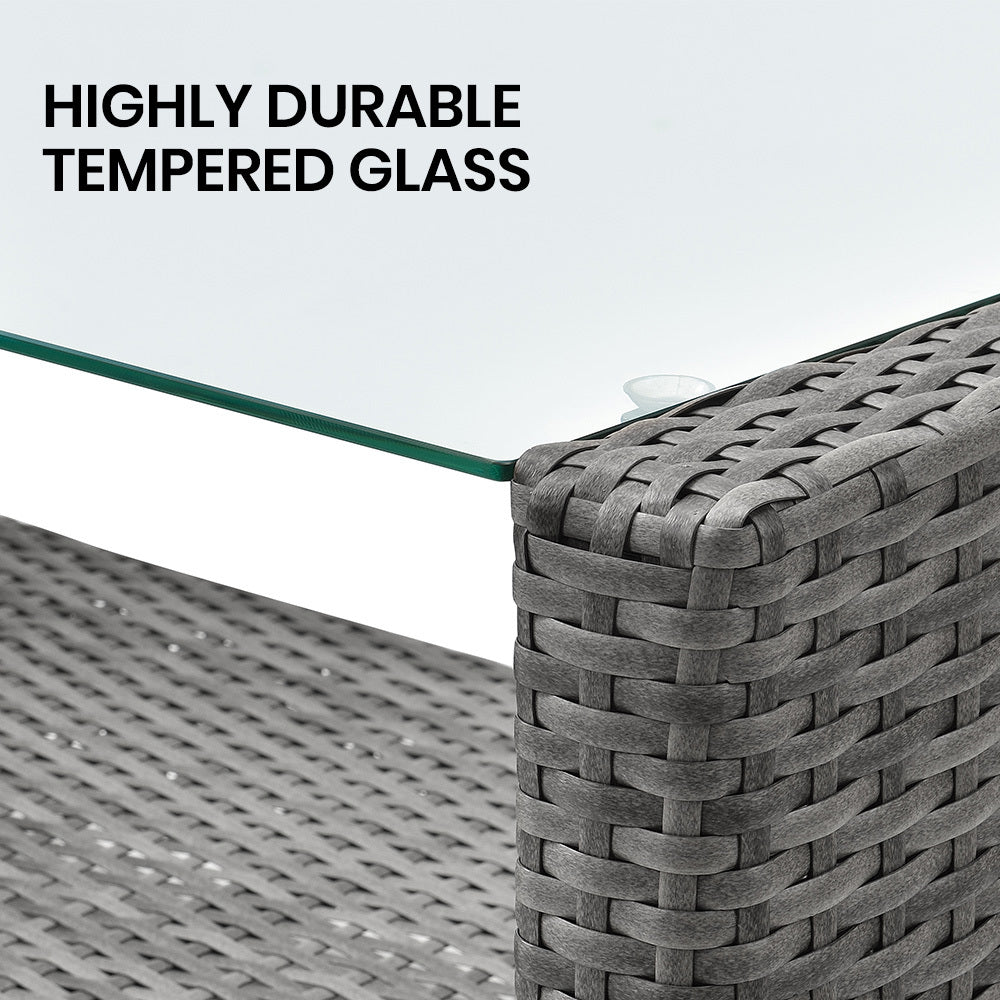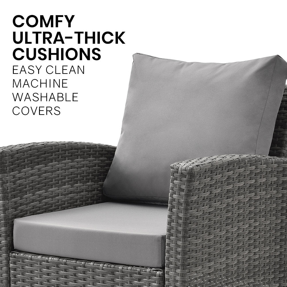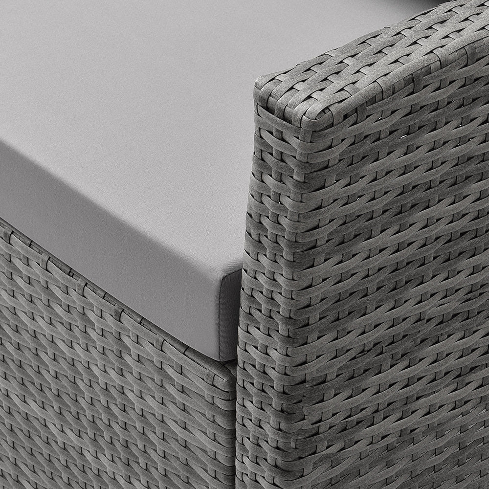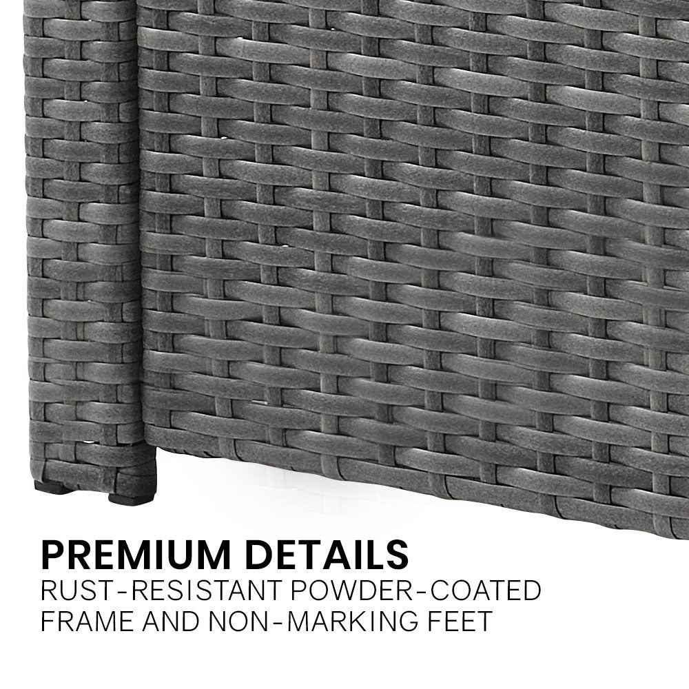 The London Rattan outdoor furniture setting has a durable, rust-resistant powder-coated steel frame and non-marking feet, ensuring no scuffs or rust stains on your outdoor living area.