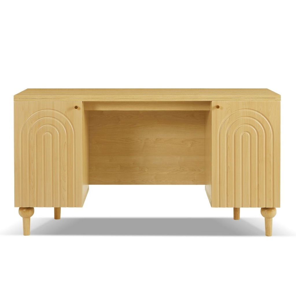 Elegant DetailsYour work area will look nothing like a soulless cubicle thanks to the elegant arched details and sculpted legs of the Maura office desk, making it a great fit if your home office is part of an open space or in a multiple-use room.