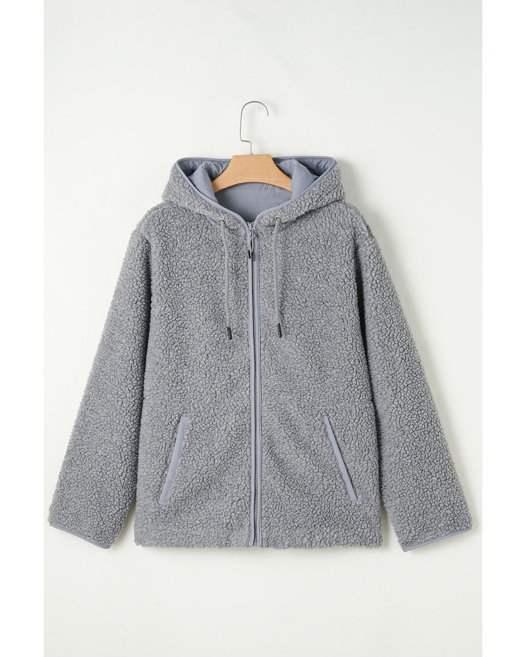 Medium Grey Fleece Zip Up Drawstring Hooded Pocketed Jacket - M
