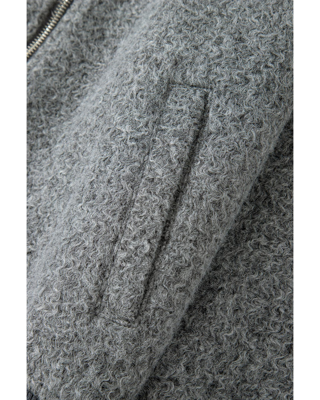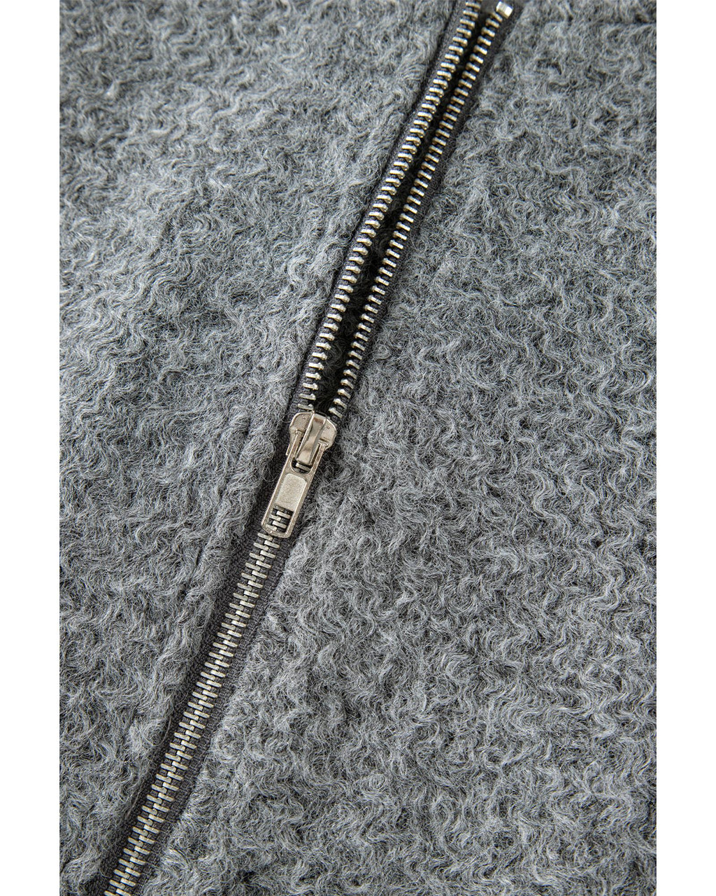 Medium Grey Fuzzy Zip Up Pocketed Sleeve Jacket - L