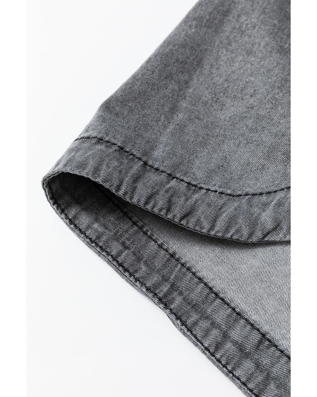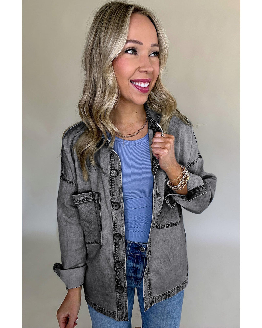 • Medium Grey Mineral Wash Patched Pocket Split Denim Jacket