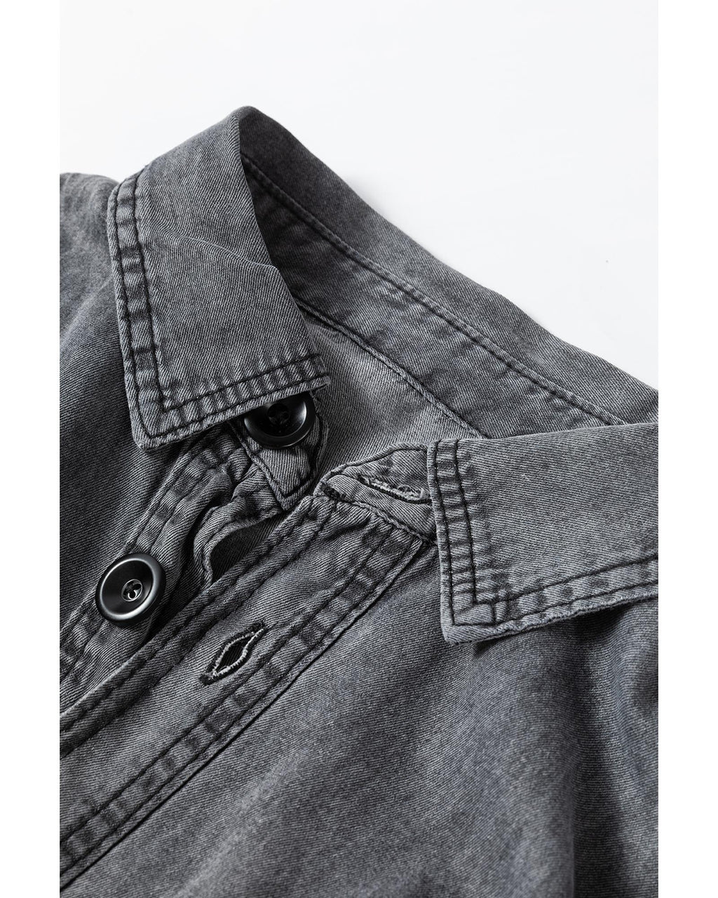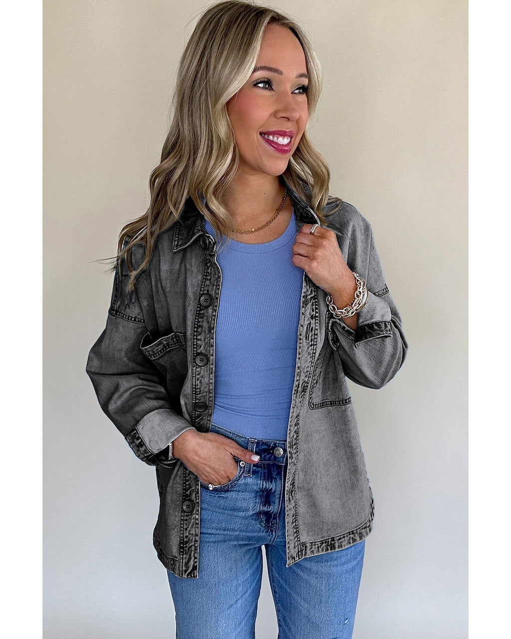 • Medium Grey Mineral Wash Patched Pocket Split Denim Jacket