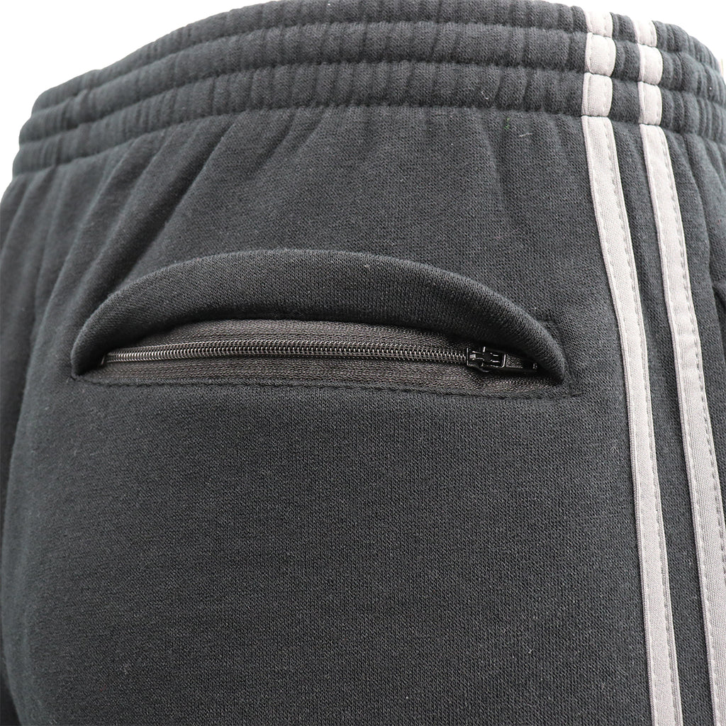 Men's Fleece Casual Sports Track Pants w Zip Pocket Striped Sweat Trousers S-6XL, Black, 6XL