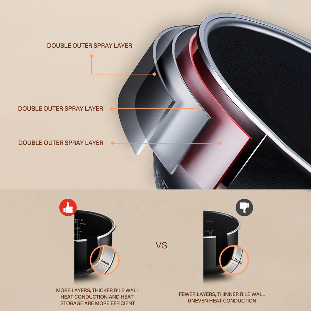 - Anti-spill valve helps to boil fragrant and sweeter rice