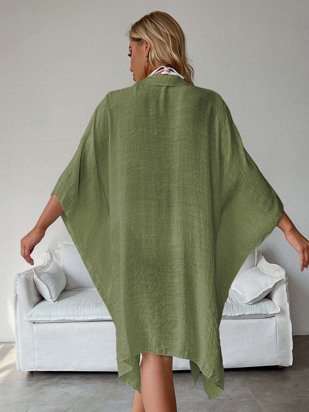 Military Green Summer Beach Cover-Up- Bamboo Cotton Sun Protection Cardigan