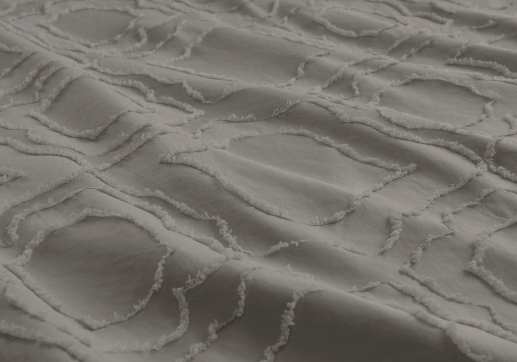 Millicent's storm grey front displays a tufted pattern that softly gestures inspiration from floral tiles with a plain dyed reverse. This comforter set consists of 5 pieces - 1 x Comforter, 2 x Standard Pillowcases and 2 x European Pillowcases that will completely transform the bedroom aesthetics into tranquility.