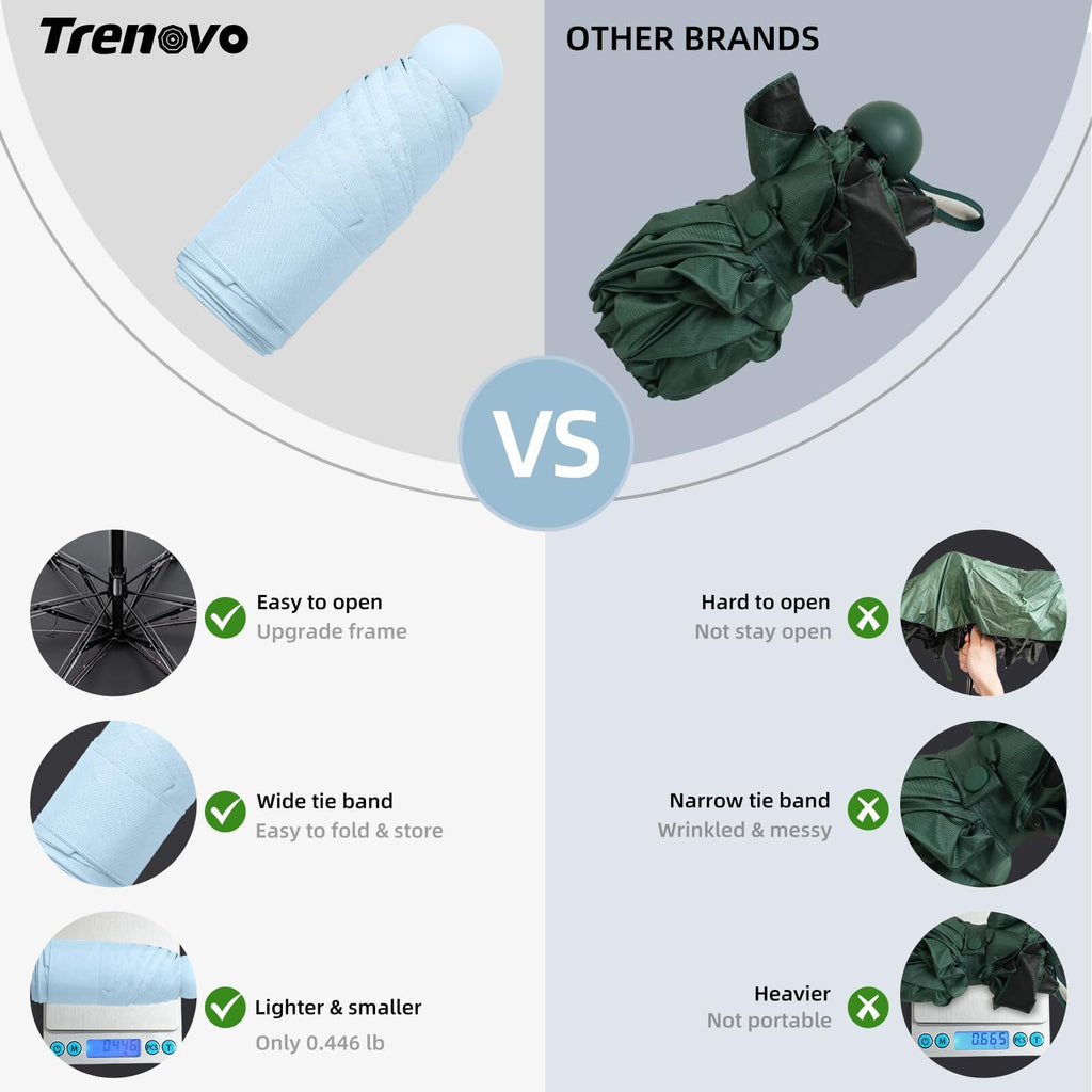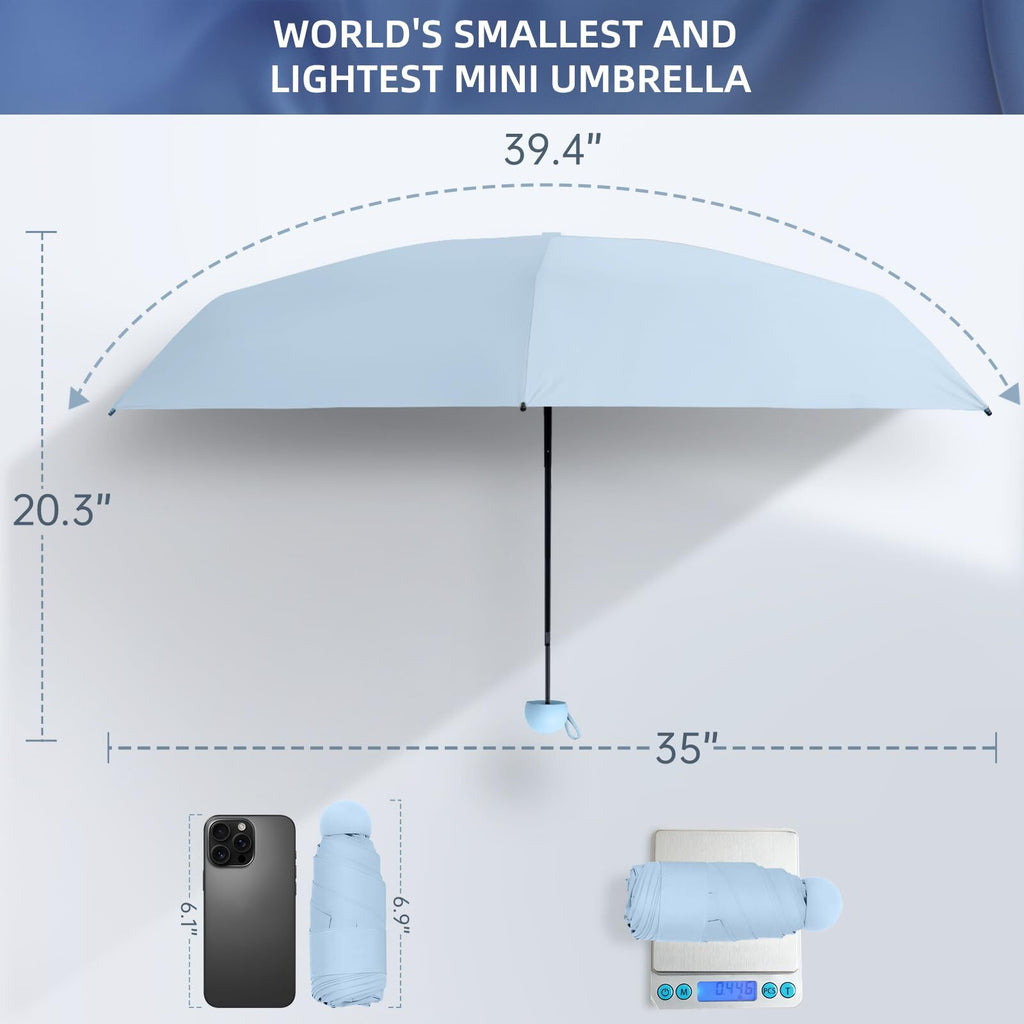 Mini Travel Umbrella – Compact Sun & Rain Protection for Women, Kids | UV-Blocking Pocket Umbrella with Case | Lightweight Foldable Umbrella(light blue)