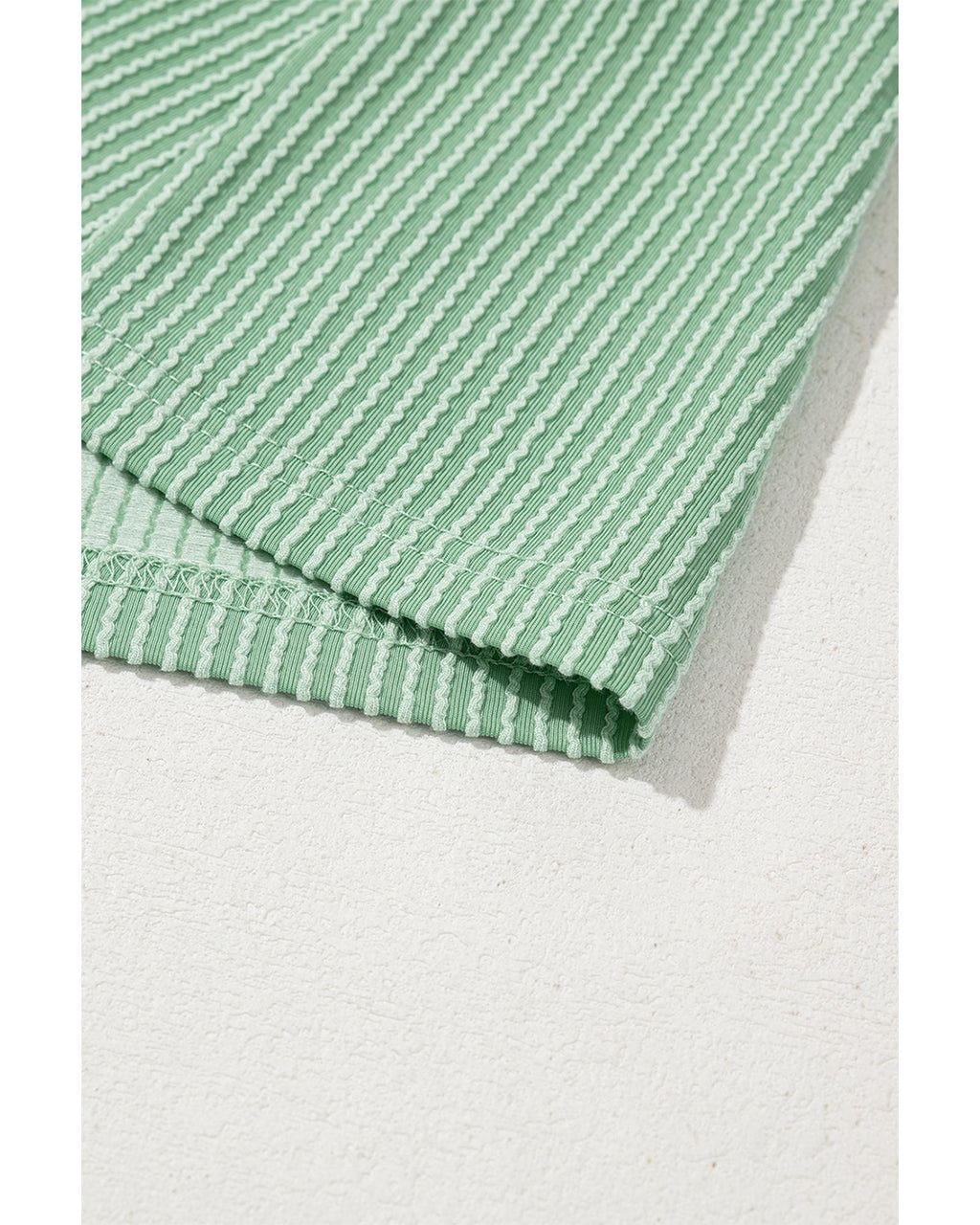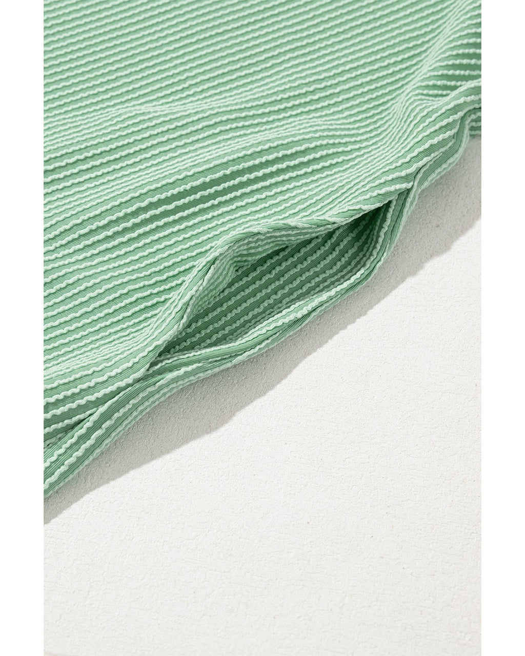 • Mint Green Corded Knit Crew Neck Puff Sleeve Shift Mini Dress