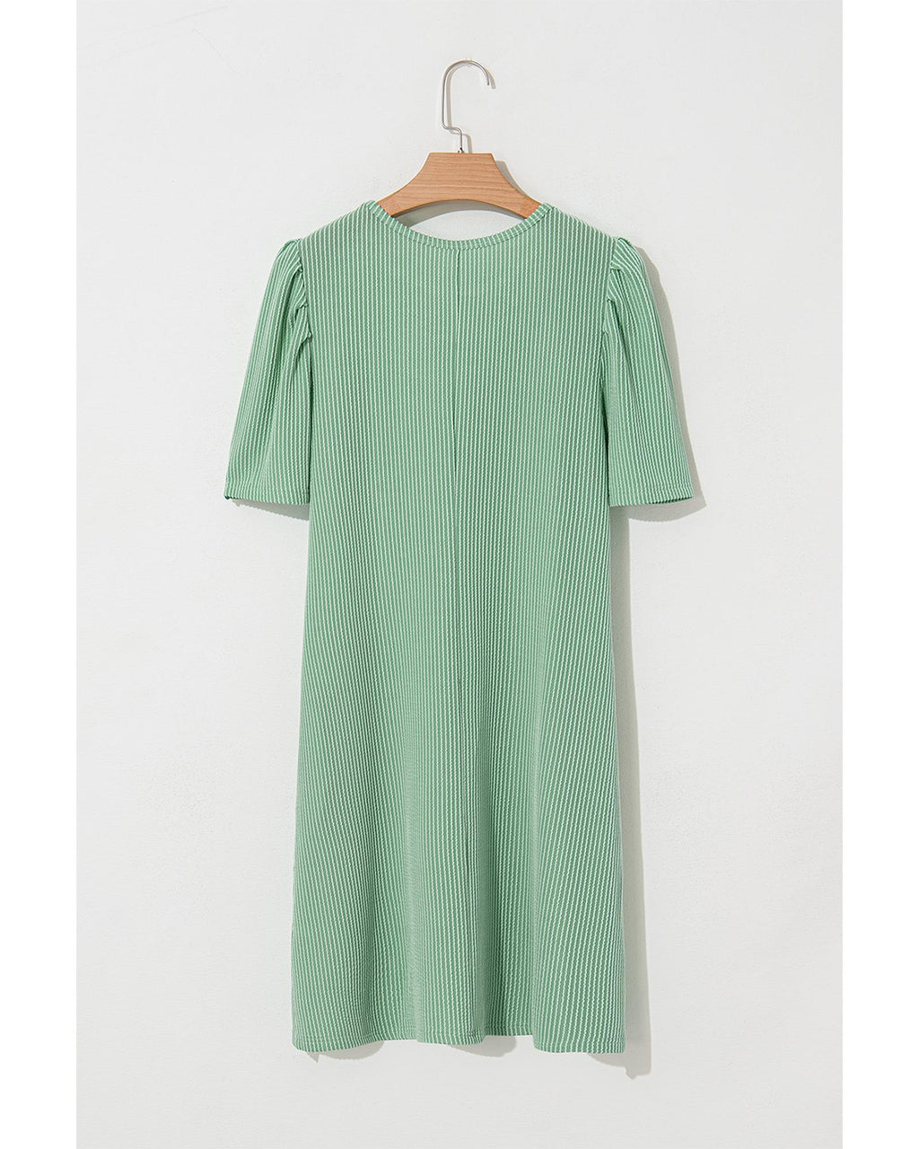 • Mint Green Corded Knit Crew Neck Puff Sleeve Shift Mini Dress