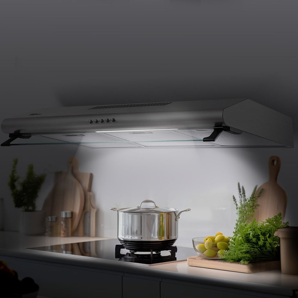 Illuminating LED Light: Our rangehood features a bright LED light, ensuring a well-lit cooking area. This energy-efficient lighting enhances visibility, making it easier to monitor and perfect your culinary creations.