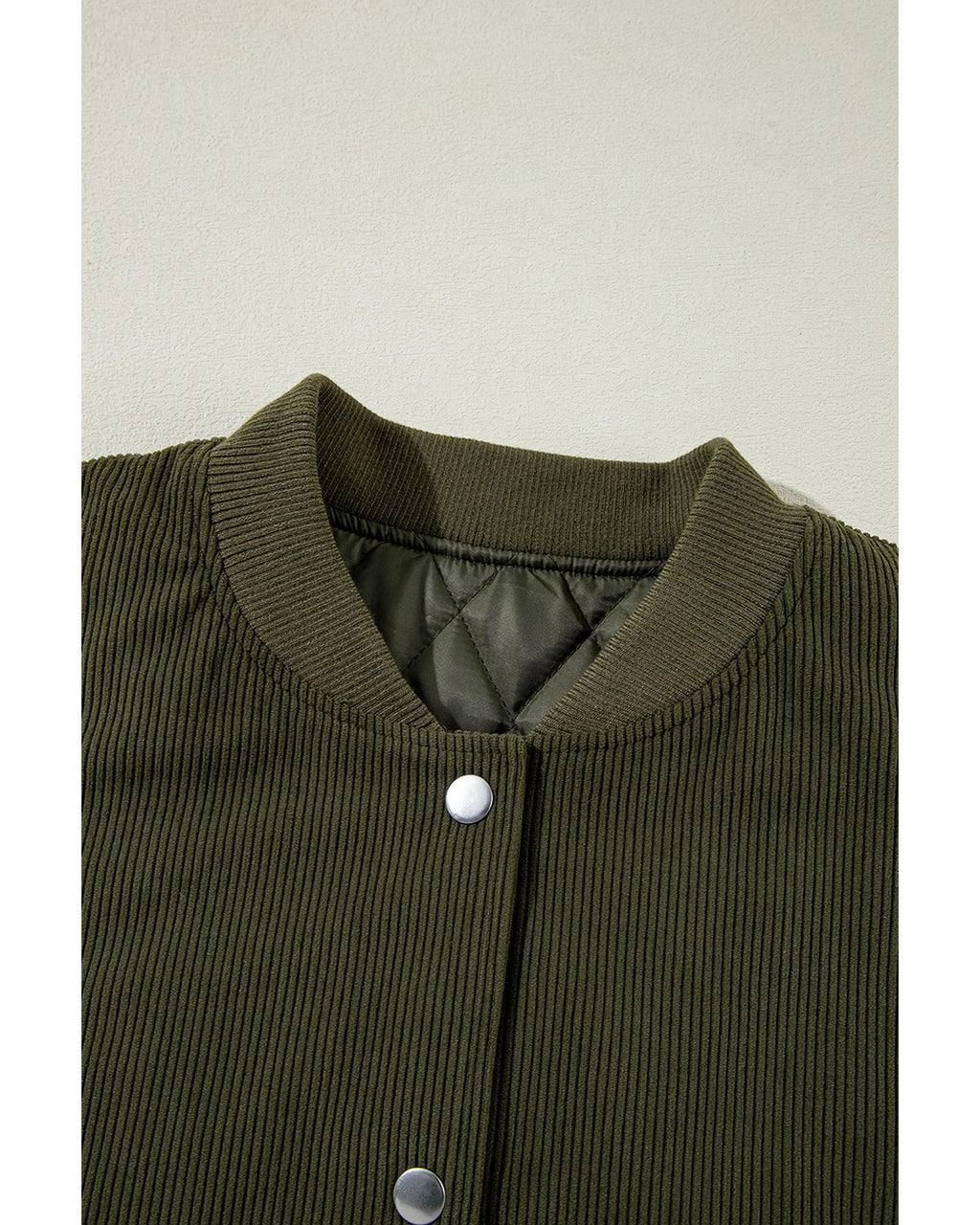 Mist Green Corduroy Fleece Patchwork Buttoned Bomber Jacket - L