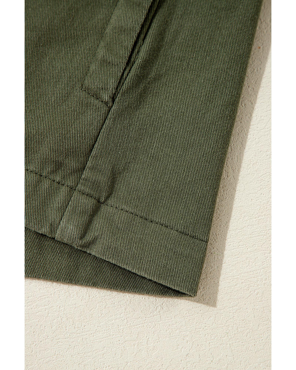 Moss Green Snap Button Zipper Tight Waist Collared Jacket - S