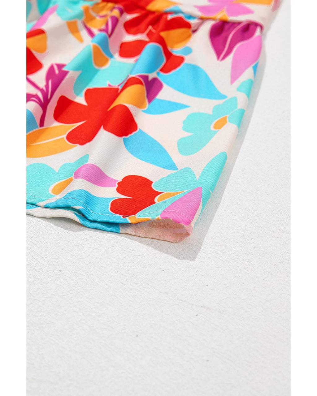 Multicolour Floral Tiered V Neck Plus Dress - 2X