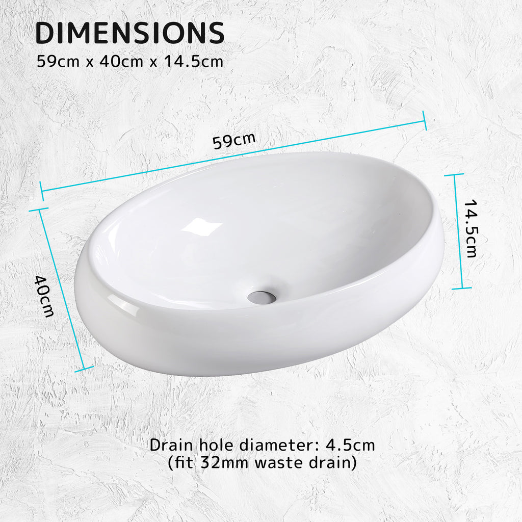 Muriel Ceramic Bathroom Basin Vanity Sink Oval Above Counter Top Mount Bowl 59 x 40 x 14.5cm - White