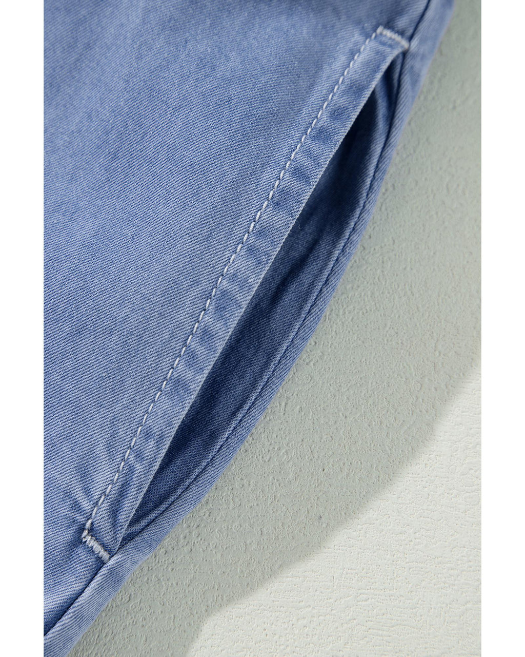 Myosotis Chambray Deep V Neck Bracelet Sleeve Maxi Dress - M