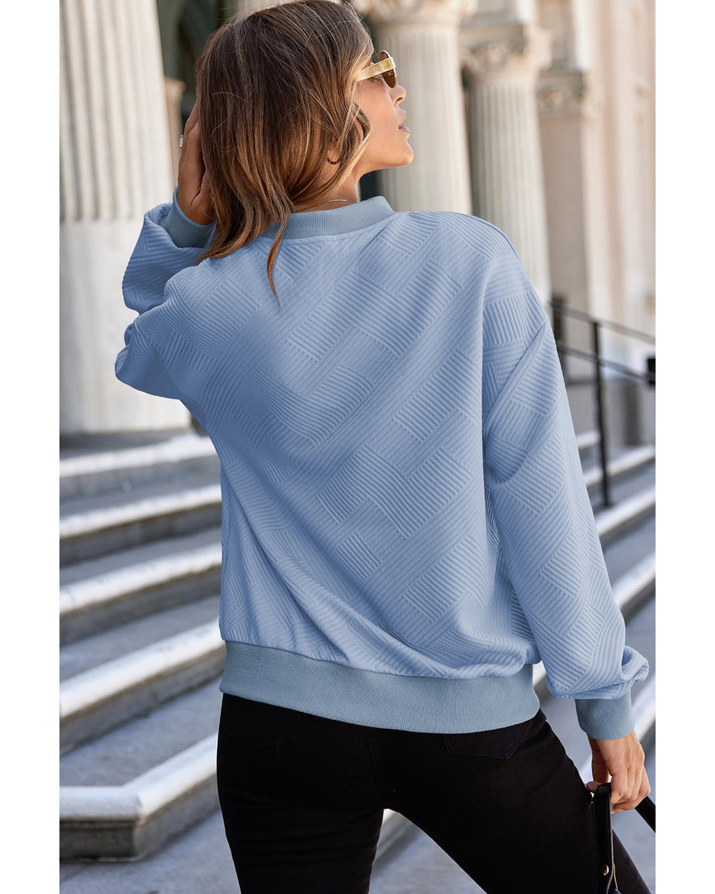 Myosotis Solid Textured Stand Neck Zipper Bomber Jacket - 2XL