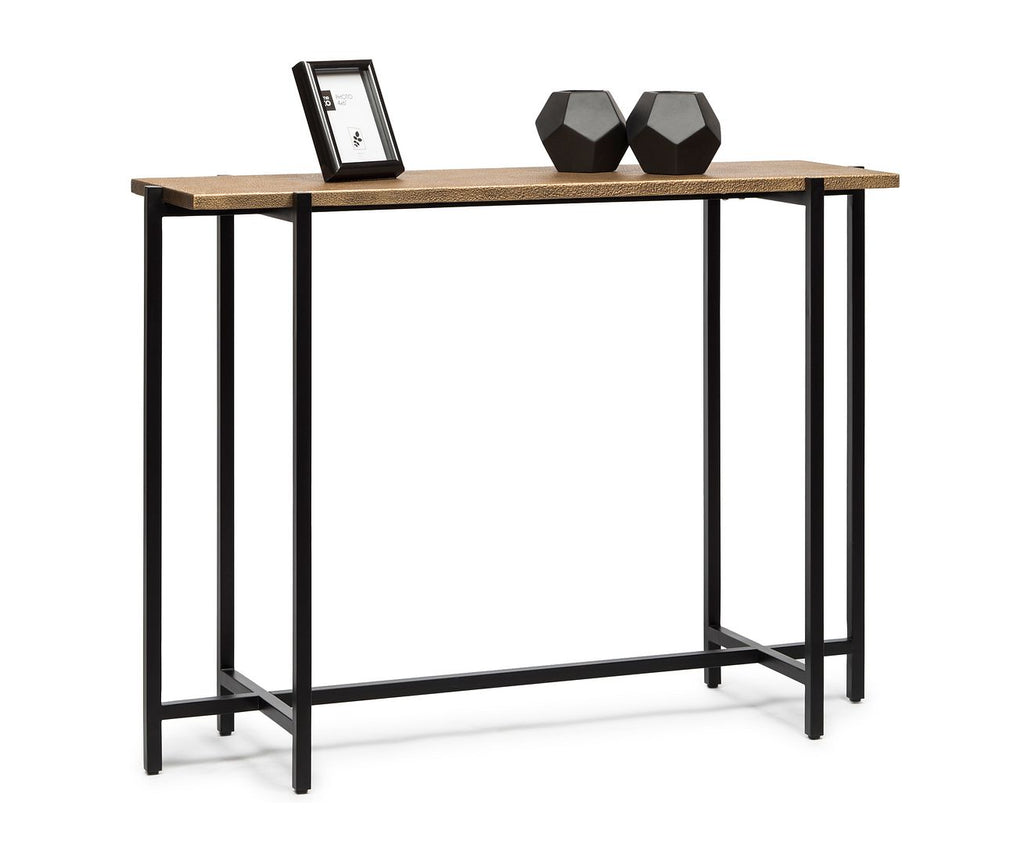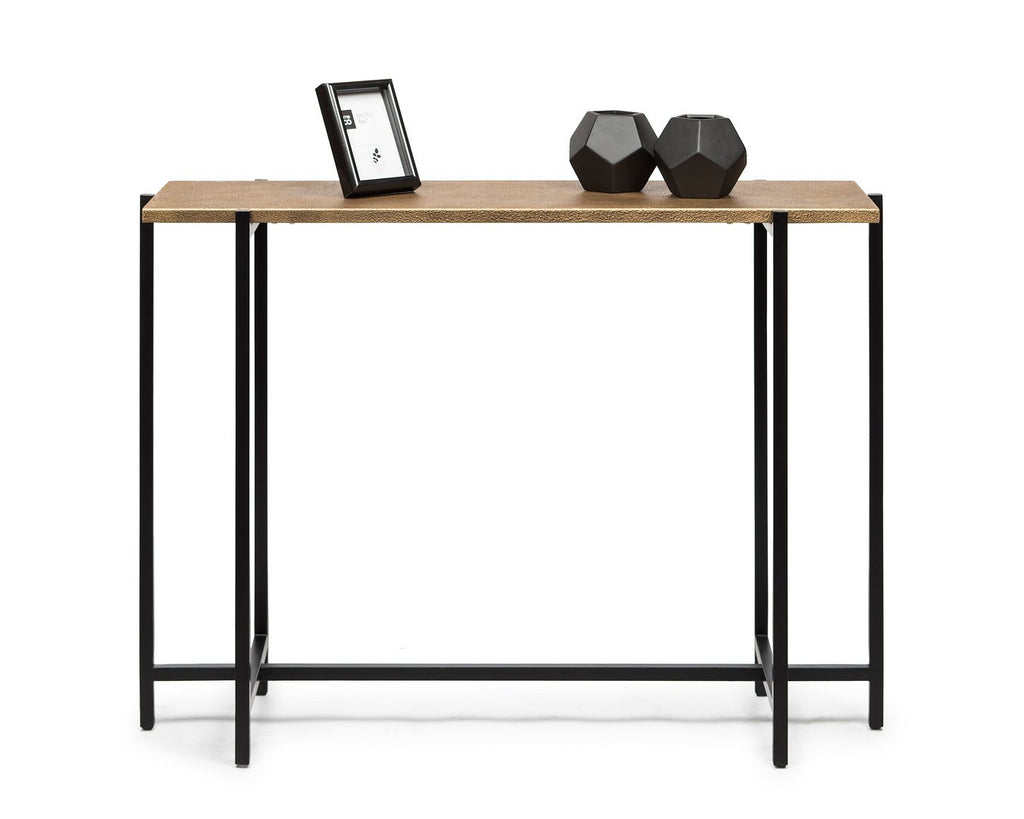 This aesthetically pleasing Narrow Golden Black Hallway Console Table with Textured Top is the perfect fit for your room. The depth of the Black Iron body works seamlessly with the intricately textured Gold Top which provides the product with a sophisticated edge. The simple, yet elegant design brings to your indoors a Contemporary touch whilst its colours provide your space with the desired appeal.