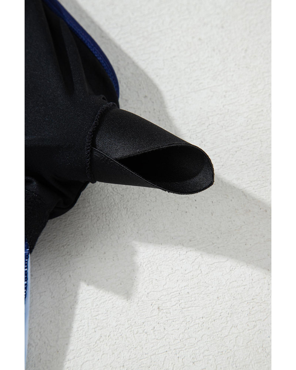 • Navy Blue Abstract Print Frilled Trim Spaghetti Straps Tankini Set