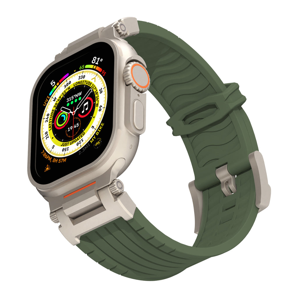 Olive Green Rugged Tactical Silicone Strap for Apple Watch Ultra & Series - Heavy-Duty Metal Clasp