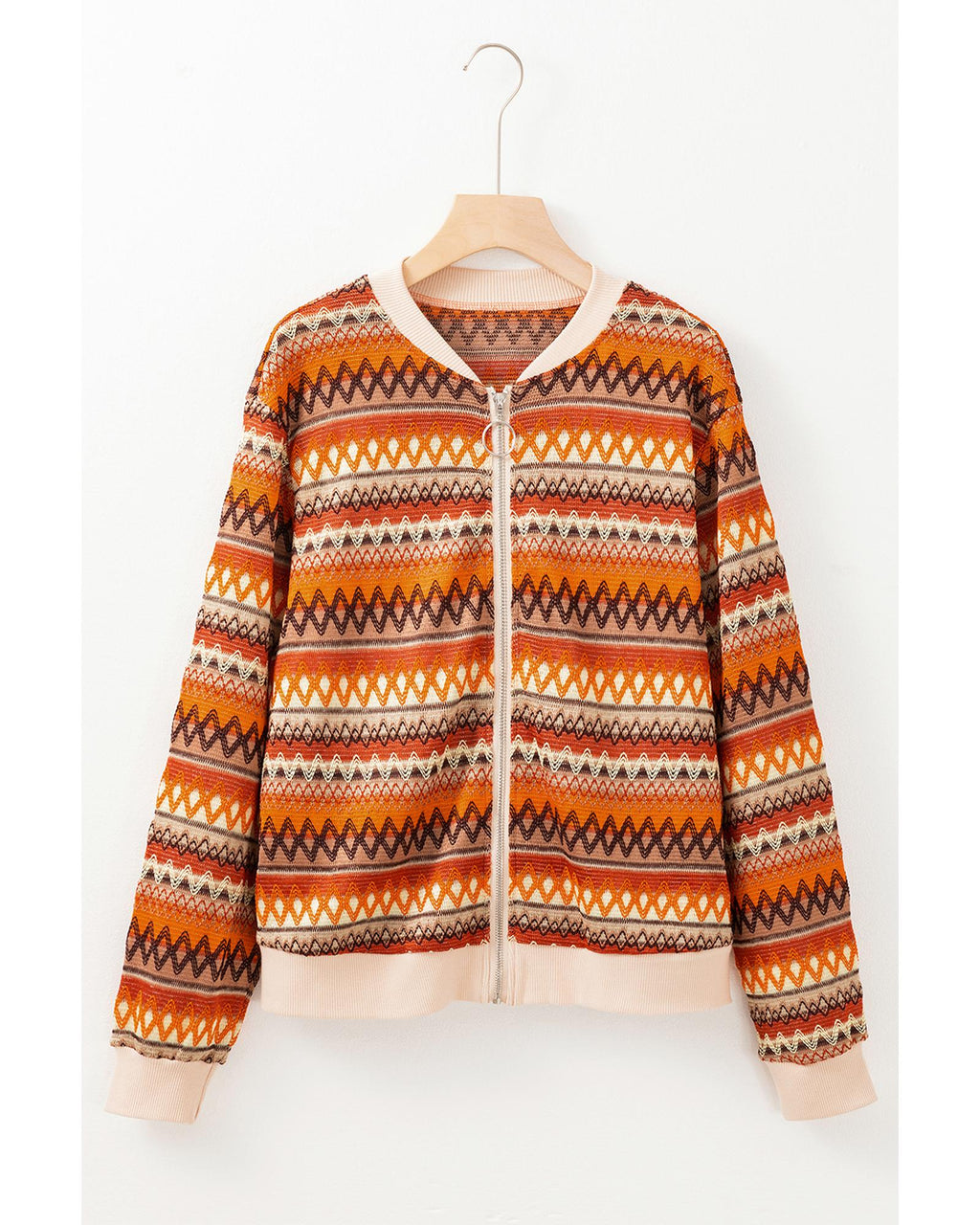 Orange Boho Striped Zip Up Long Sleeve Jacket - S