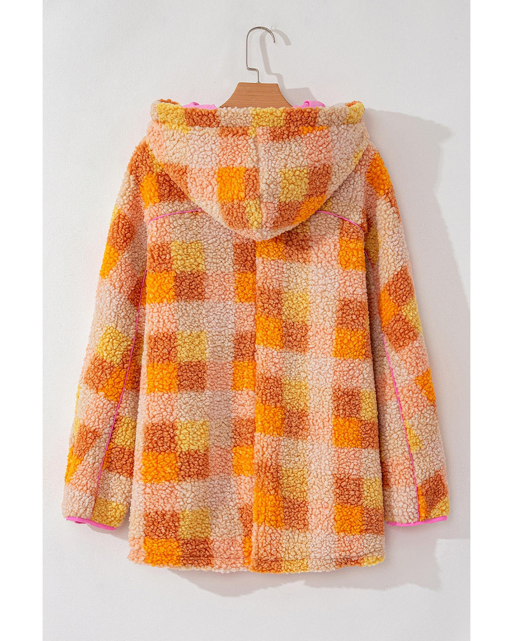 • Orange Checkered Sherpa Hooded Jacket