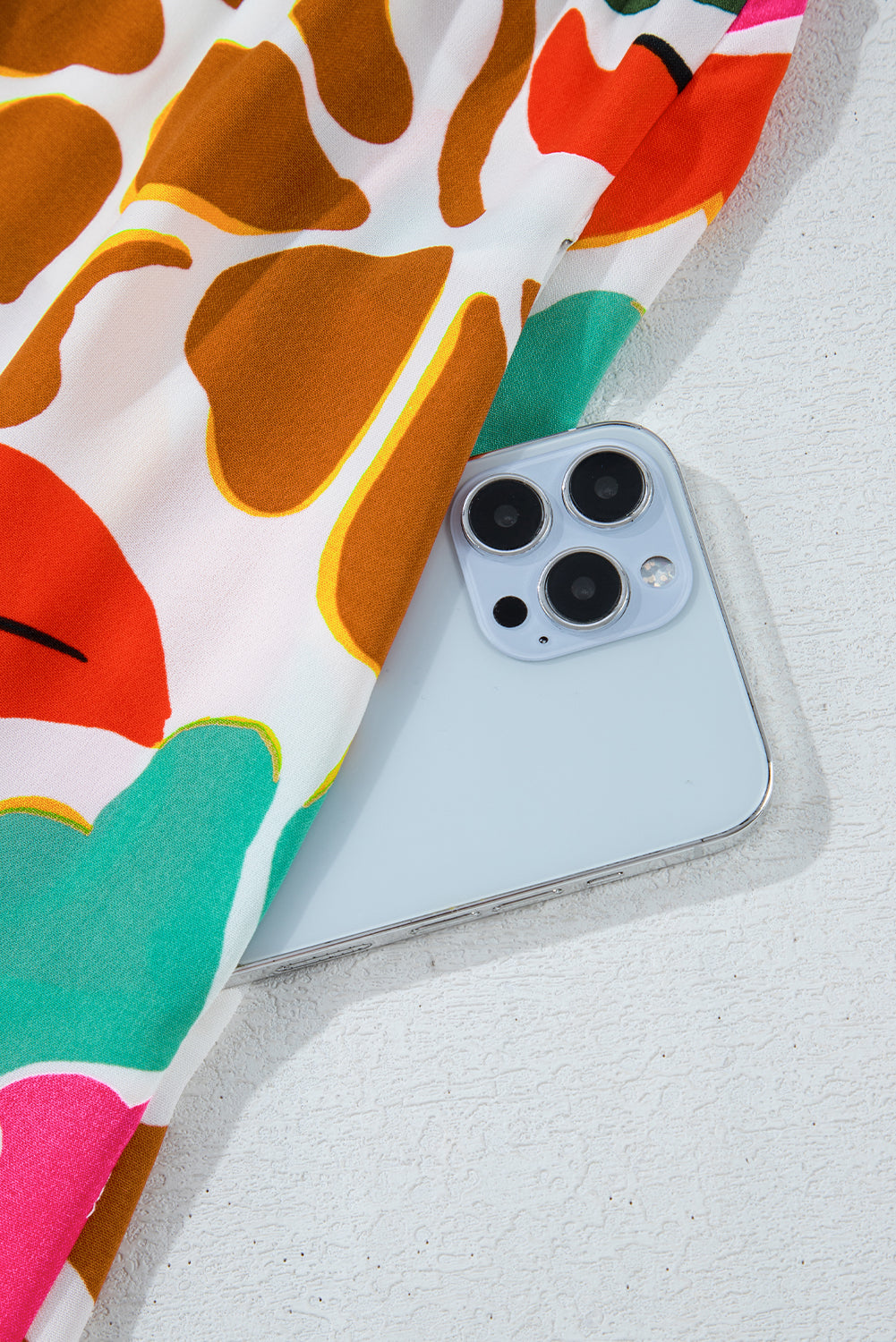 Orange Floral Print Drawstring V Neck Tiered Plus Size Dress - 4X