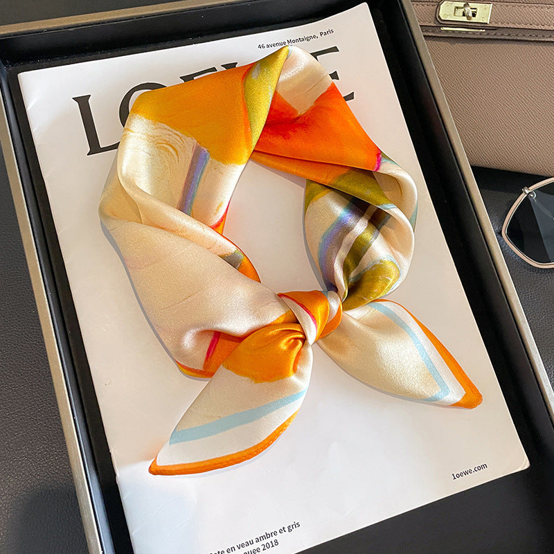 Perfect as a neck scarf, headscarf, or accessory for your bag, this versatile silk scarf is a must-have addition to any woman's wardrobe. It also makes a thoughtful and stylish gift for any special occasion.