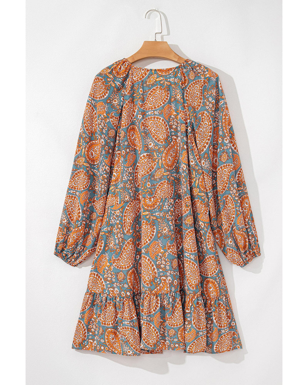 Orange Paisley Print Loose Fit Drawstring High Waist Mini Dress - L