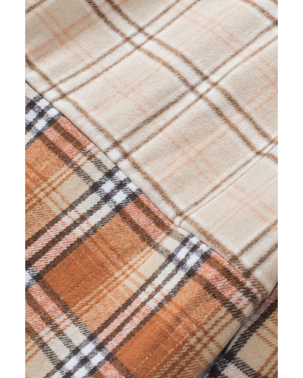Orange Plaid Color Block Patchwork Shirt Jacket with Pocket - S