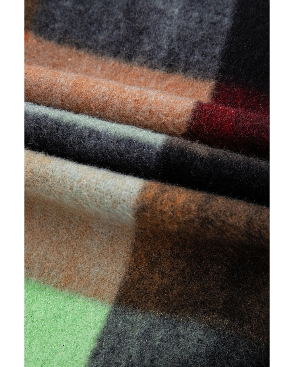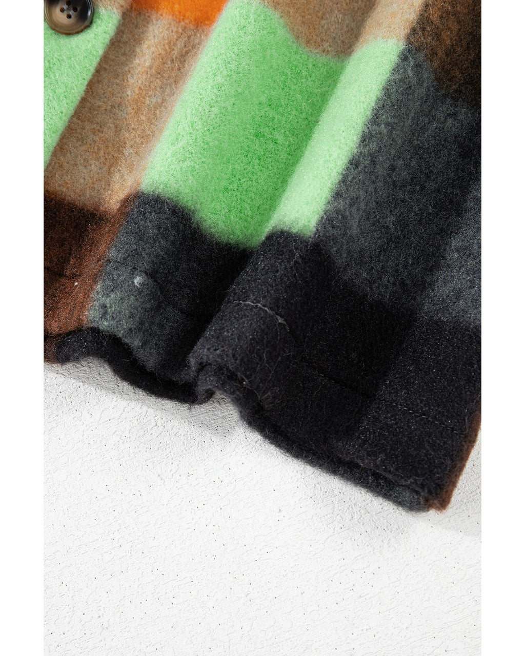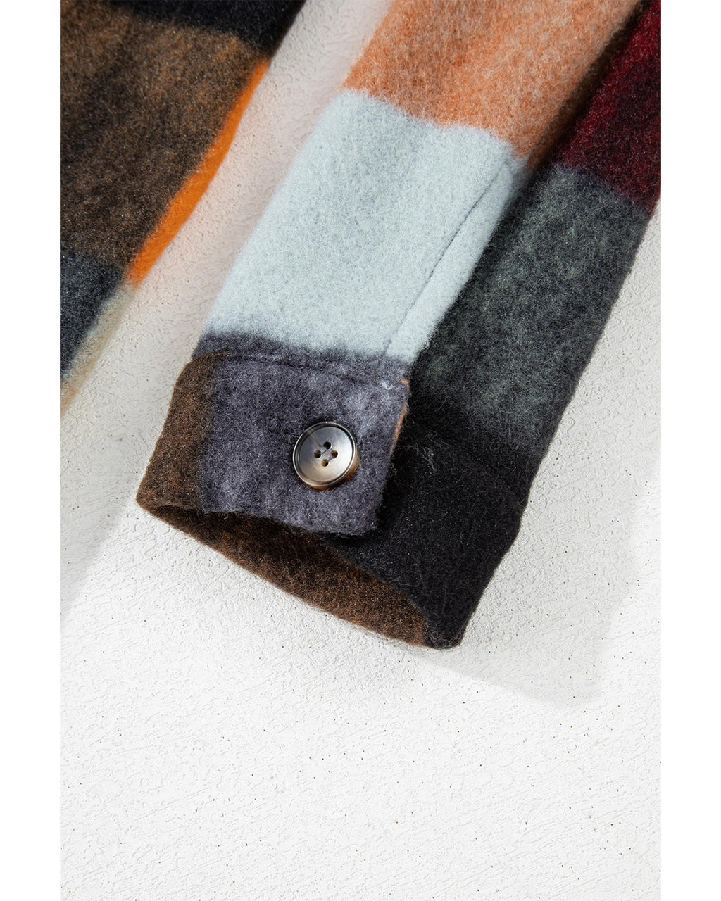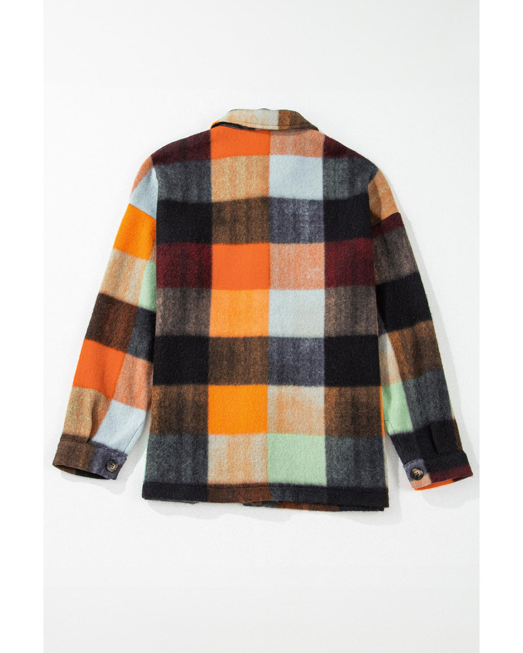 Orange Plaid Print Flap Pocket Long Jacket - S