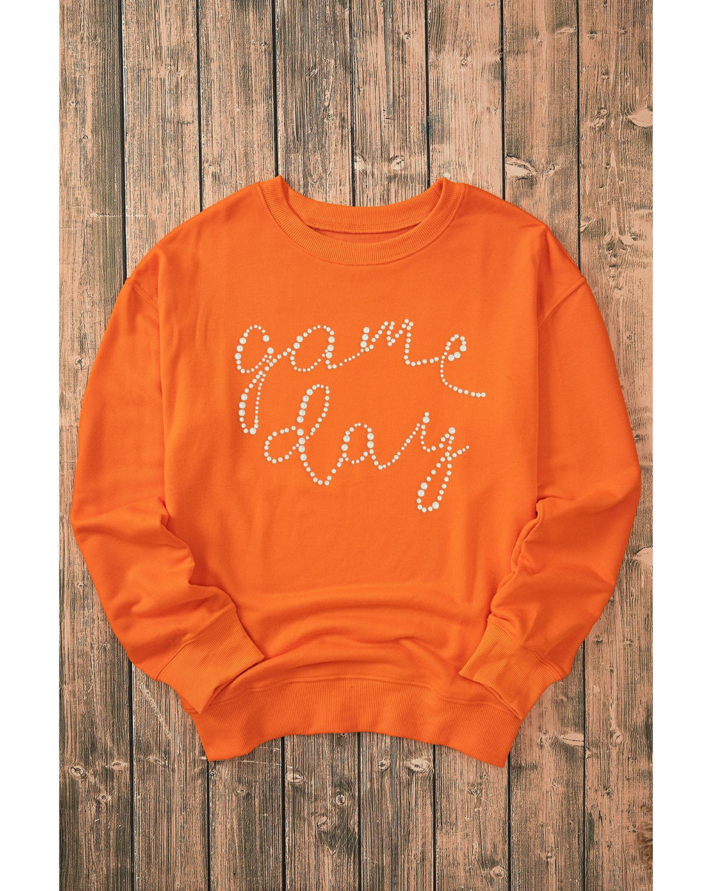 • Orange Rhinestone Game Day Pattern Drop Shoulder Sweatshirt