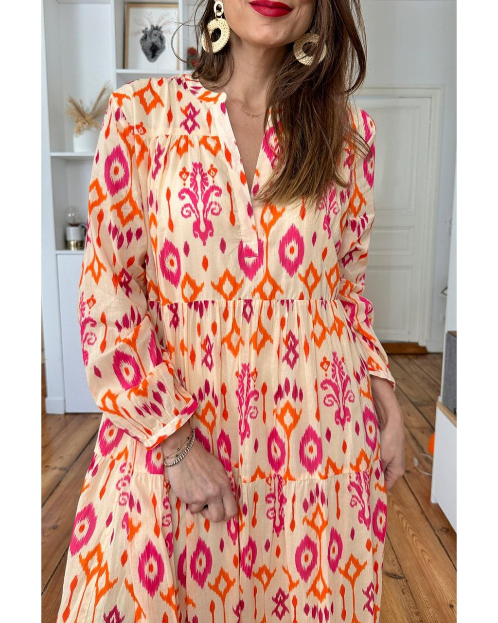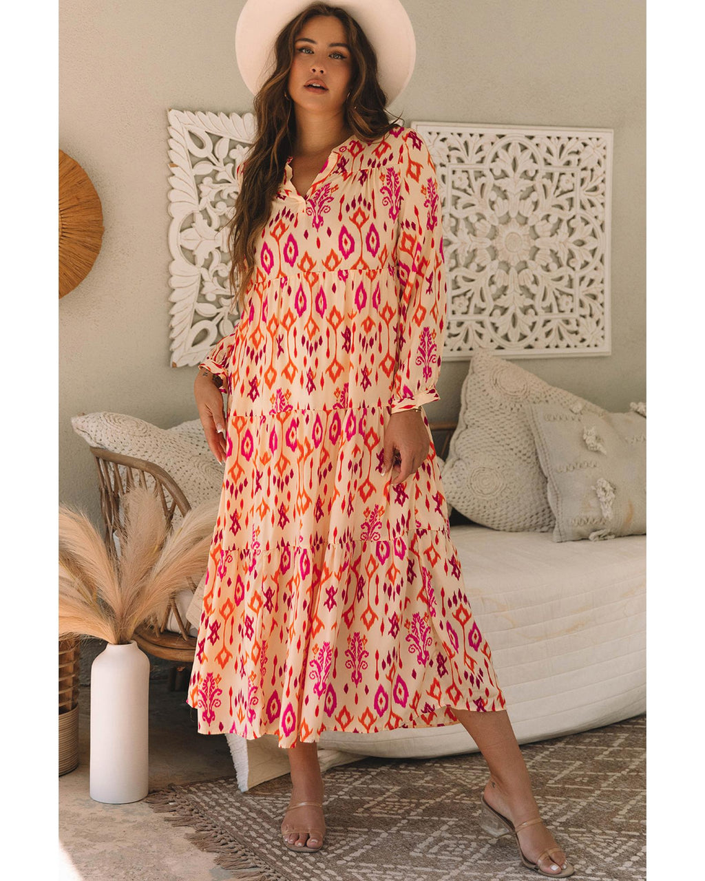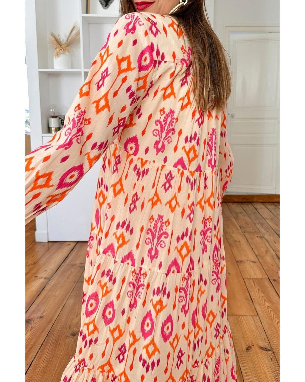• Orange Western Abstract Geometric Printed Maxi Dress