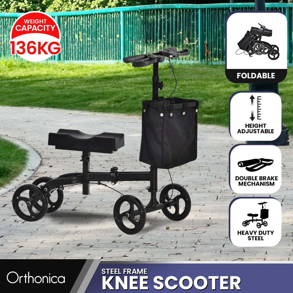 Crafted with a heavy-duty steel frame, the Orthonica Knee Walker Scooter is built to withstand the rigors of daily use. Its robust construction ensures maximum stability, allowing you to confidently navigate various terrains with ease.