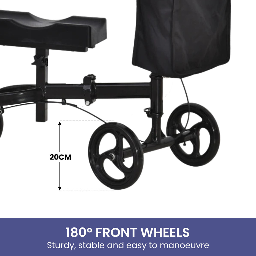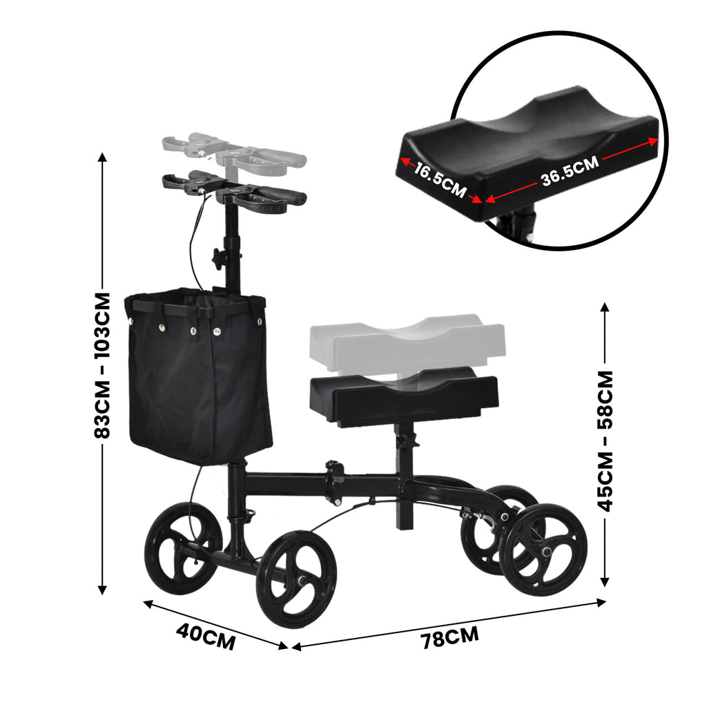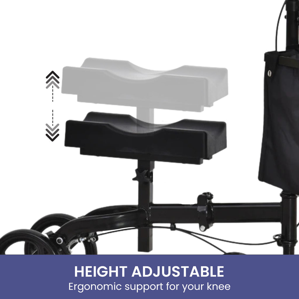 Designed to cater to individuals of varying heights, the knee walker scooter boasts a convenient height-adjustable feature. This enables you to customize the handlebar height to suit your comfort level