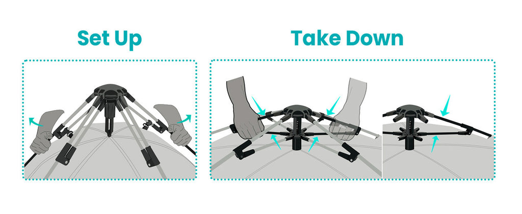 • Pop Up Beach Tent Instant Setup: no tools, no stress! 1 person can setup easily in seconds, fold the tent and push down the frame, the beach tent stand up instantly. Frustrated days of bulky tents and complicated instructions has gone!