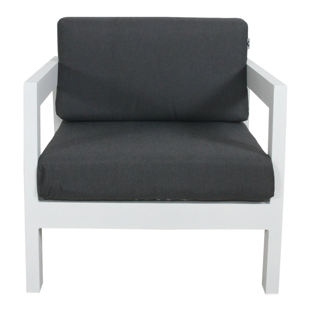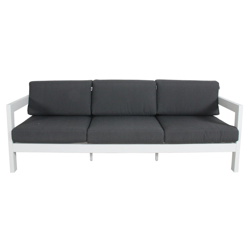 This smart combination of 3+2+1 seater sofas makes dining in outdoor areas trouble-free. Suitable for medium- to large-sized outdoor areas, the sofas, designed in contemporary coastal style, showcase amazing craftsmanship that ensures complete relaxation when you sit or stretch on them. The sofas offer wide and deep seating for superior lounge comfort. Weatherproof, water-repellent, and UV-protected cushions make the sofas ideal for outdoor dining areas. The structural frame of the sofas is made of durable, powder-coated, non-rusting aluminium with 100% polyester fabric upholstery. The white frame with dark grey fabric looks beautiful in the outdoor setting. The sofas are durable as well. The frame comes with a two-year warranty, while the fabric and foam come with a one-year warranty.