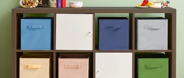- Dimensions (each): 26.7 x 26.7 x 28 cm, Set of 6. Material: 100% Non-Woven Fabric. Use alone or with a cube bookshelf, cabinet, shelves, shelving system.