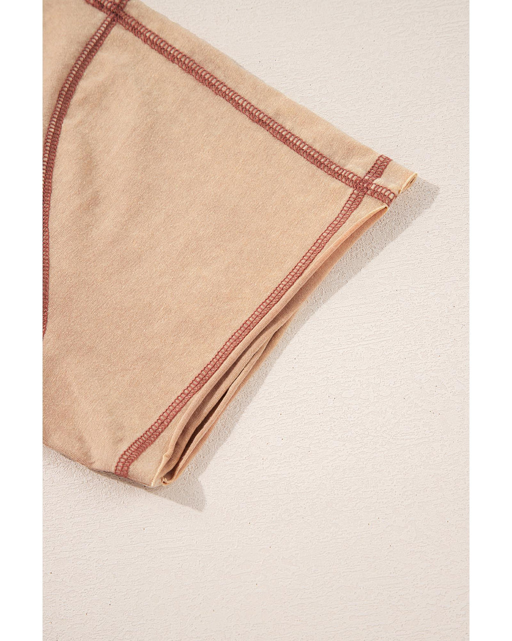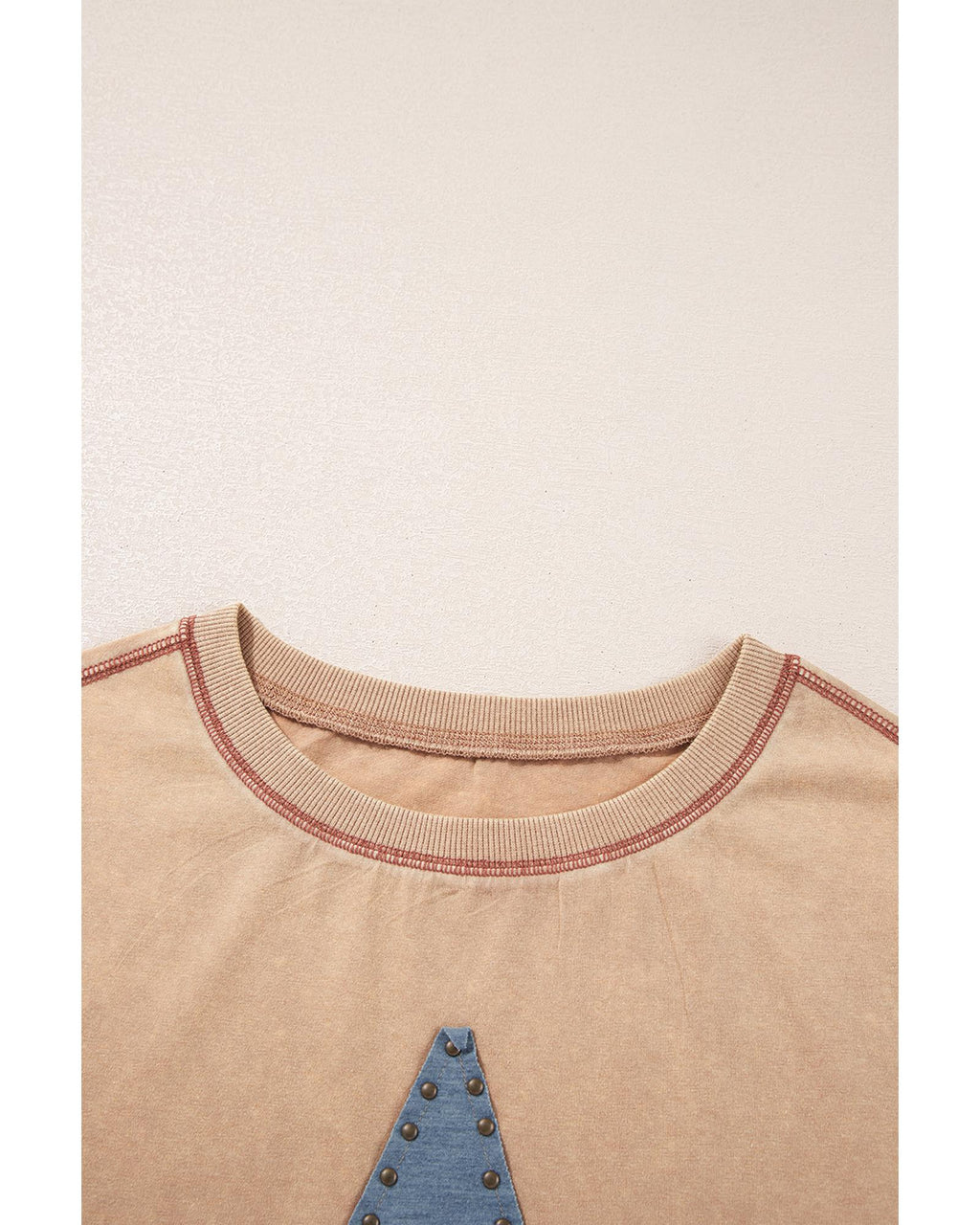 Pale Khaki Mineral Wash Stud Beaded Star Graphic Pocketed T Shirt Dress - S