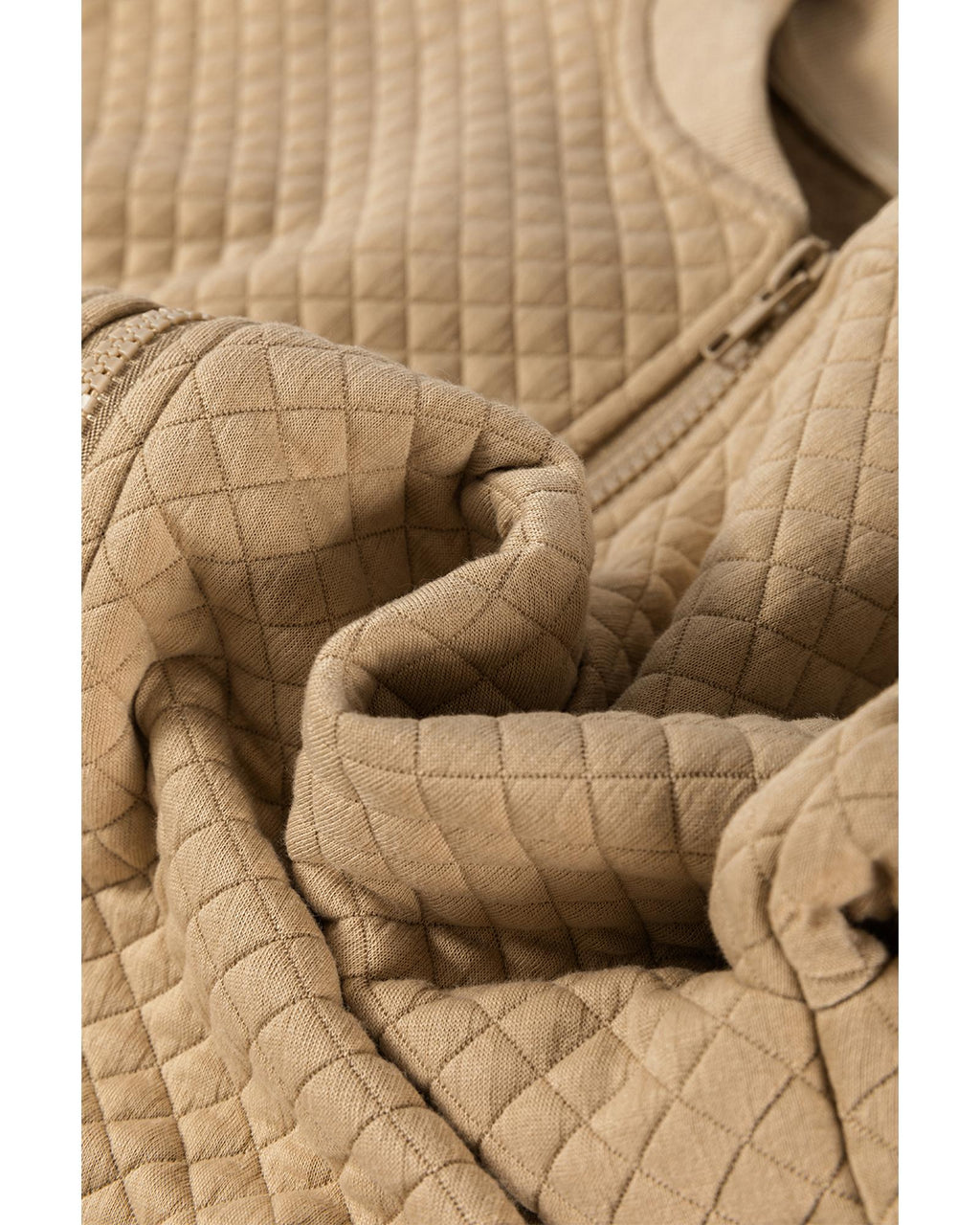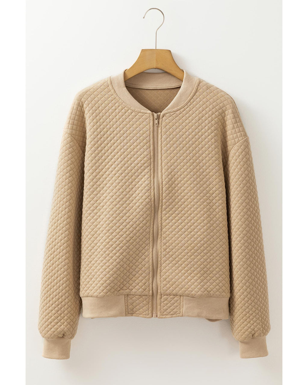 Pale Khaki Solid Geometric Textured Baseball Collar Jacket - L
