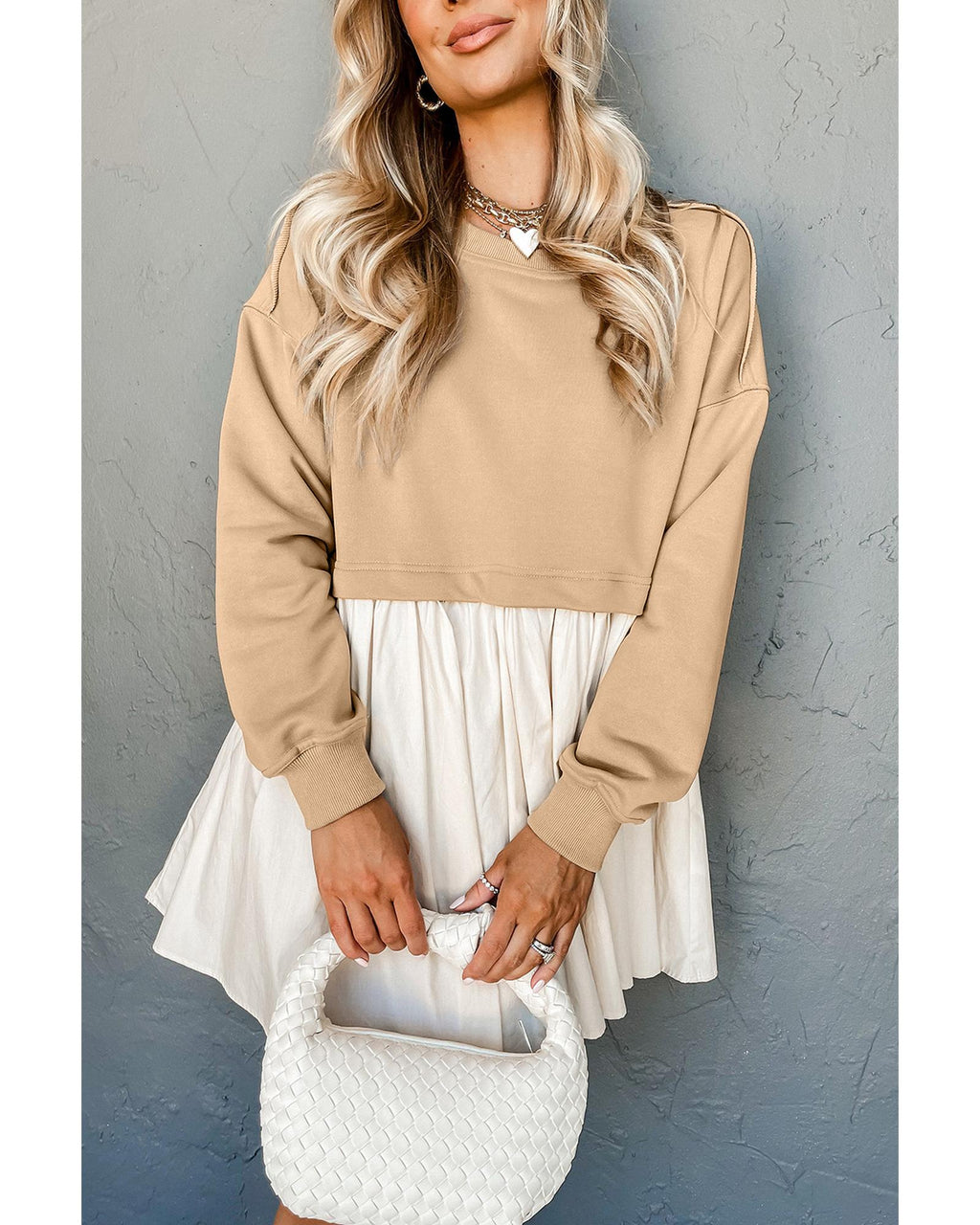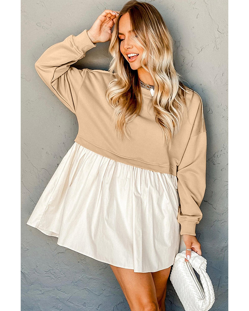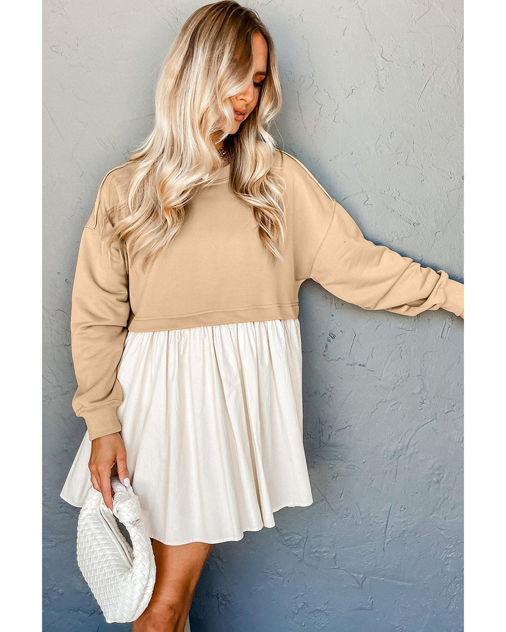 Pale Khaki Sweatshirt Poplin Mini Dress - S