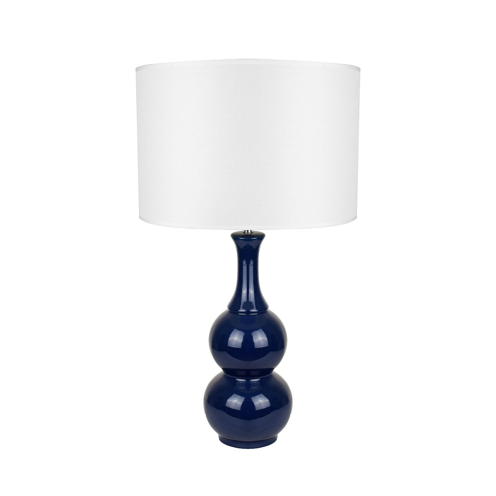 The matte-white shade allows light to shoot above adjacent ceiling and walls, while the light below highlights the colourful ceramic base, creating complimentary shadows along with its rounded features. There are various colours, including a deep blue, pale green, deep red and striking white gloss finish.