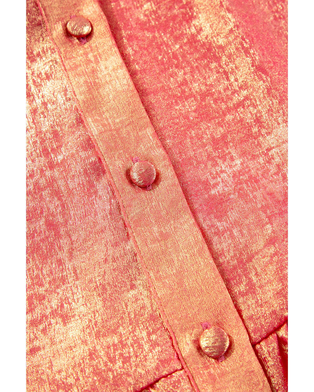 • Peach Blossom Metallic Balloon Sleeve Shirt Plus Size Mini Dress