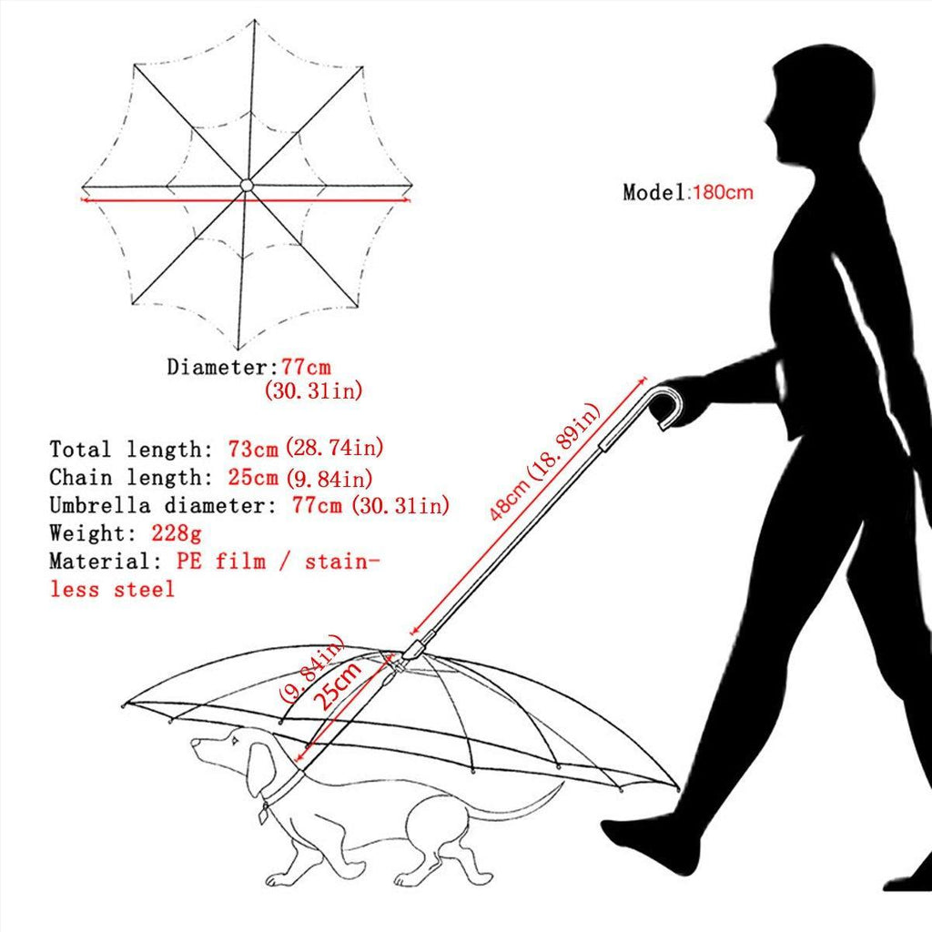 With a diameter of 30 inches (77 cm), this umbrella provides ample coverage, protecting your furry friend from rain while allowing them a full view of their surroundings.