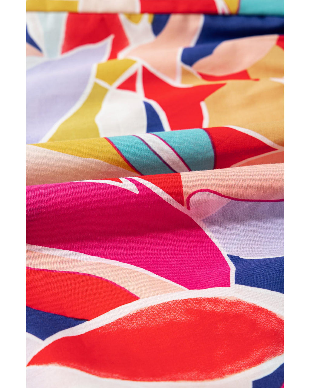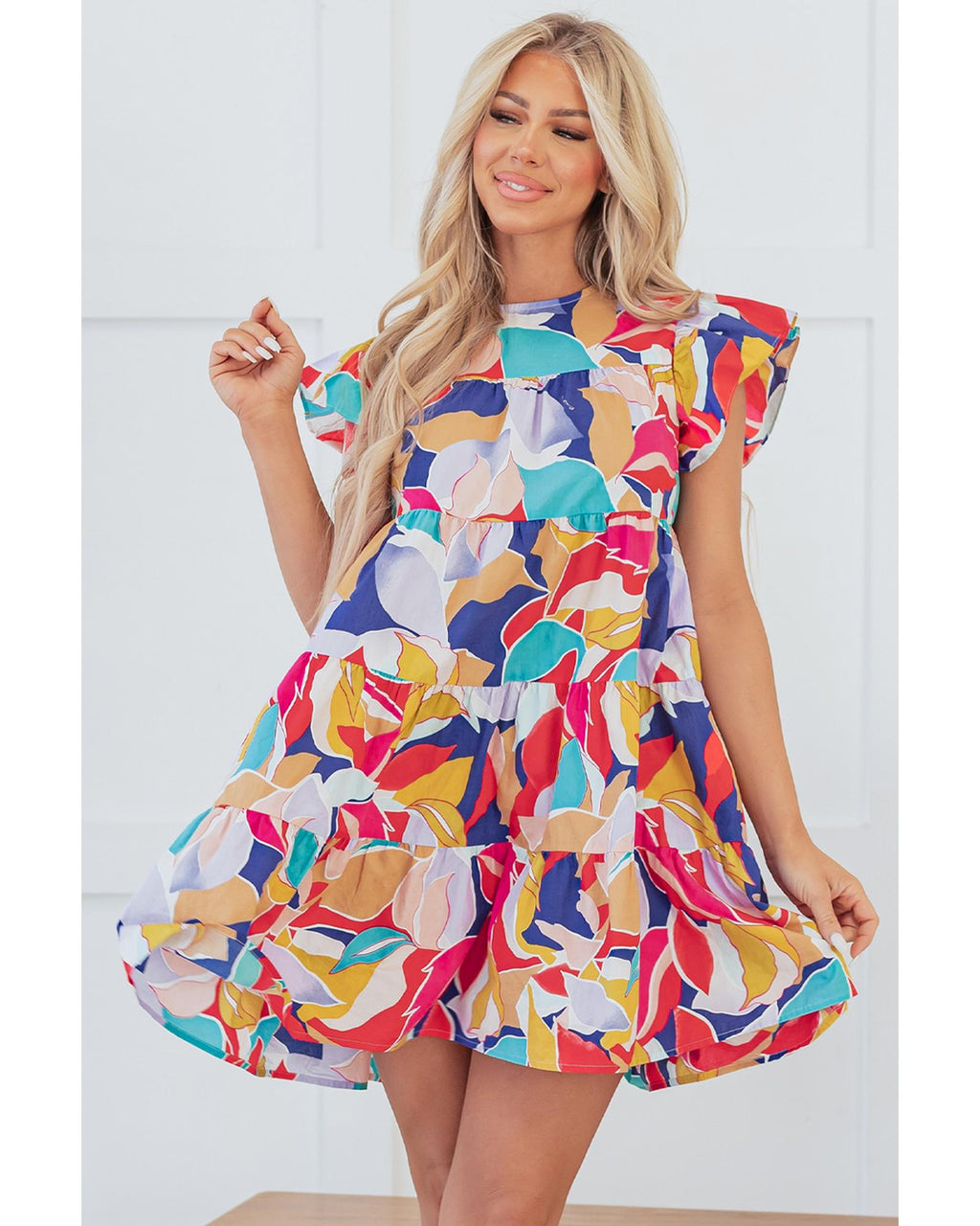 Pink Abstract Printed Ruffled Flutter Sleeve Tiered Mini Dress - L