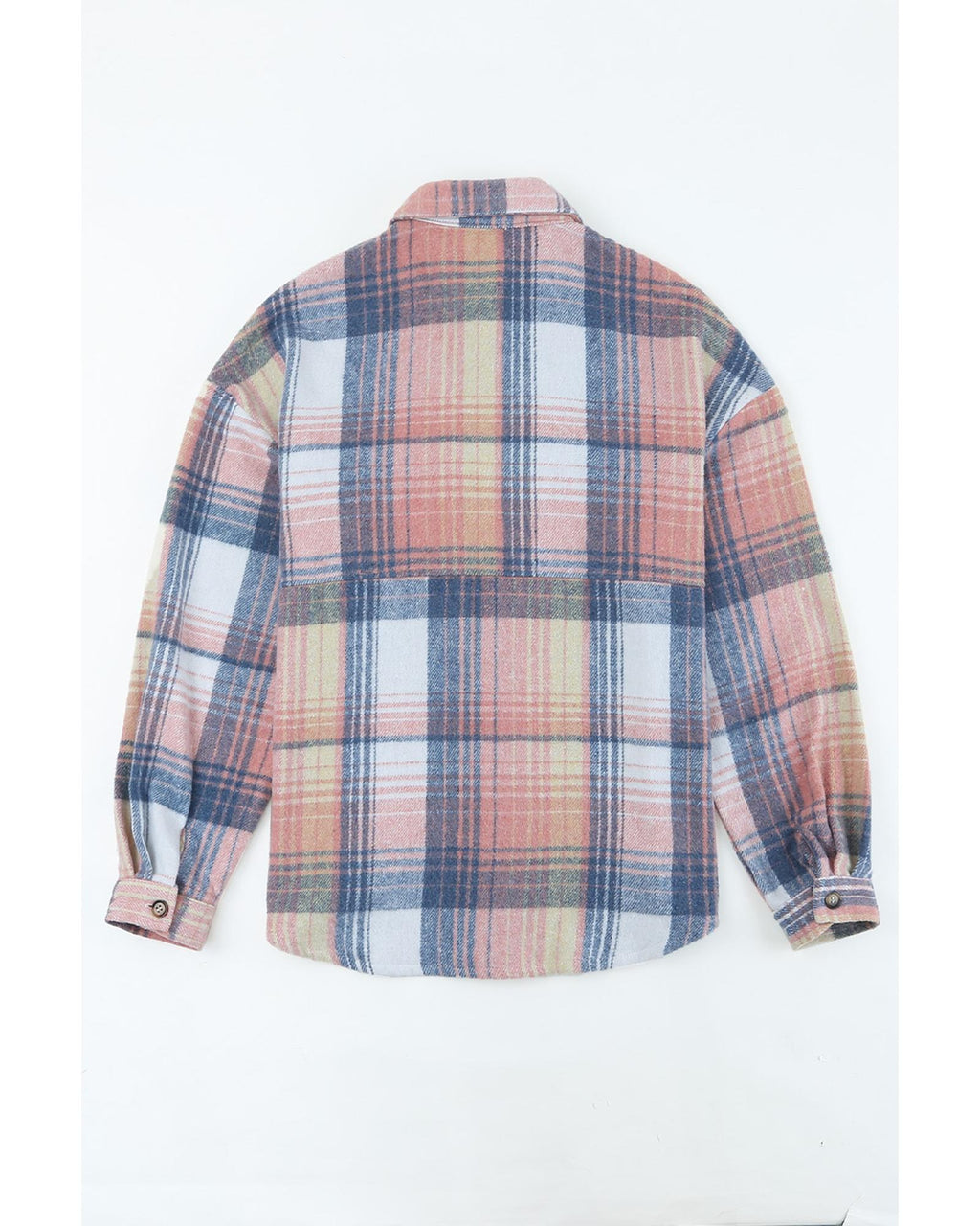 Pink Black/Pink Plaid Flap Pockets Shacket - S