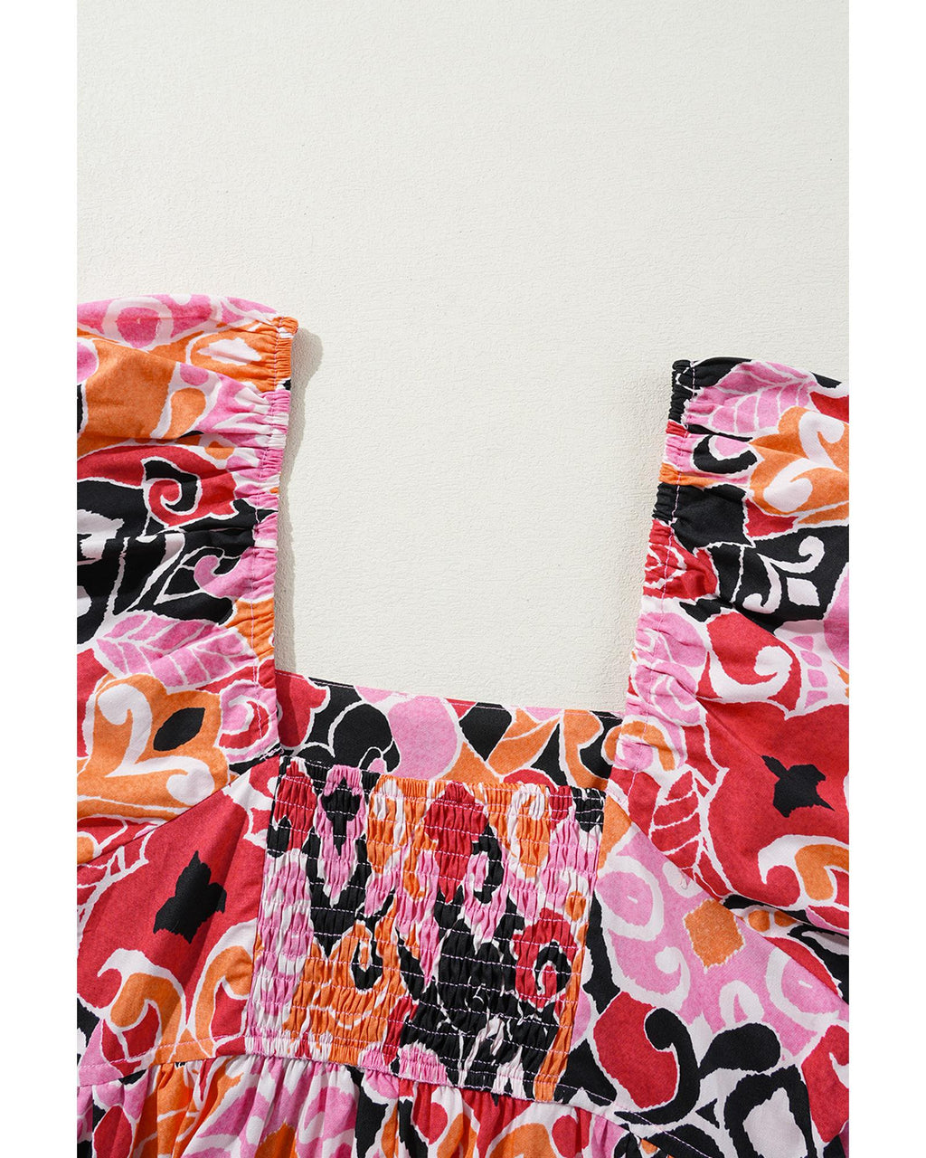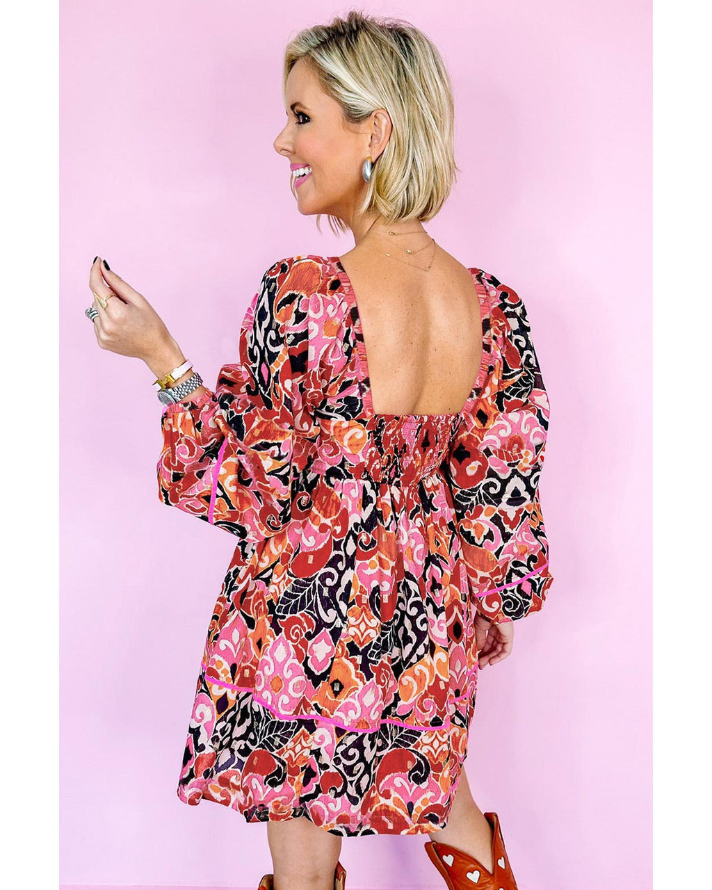 Pink Bohemian Square Neck Puff Sleeve Mini Dress - XL