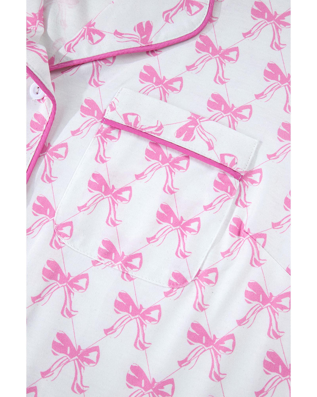 Pink Bowknot Printed Short Sleeve and Ruffled Shorts Valentines Pajama Set - M